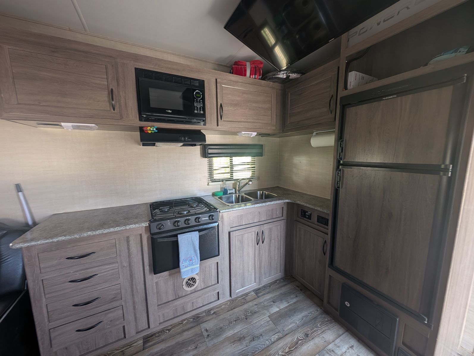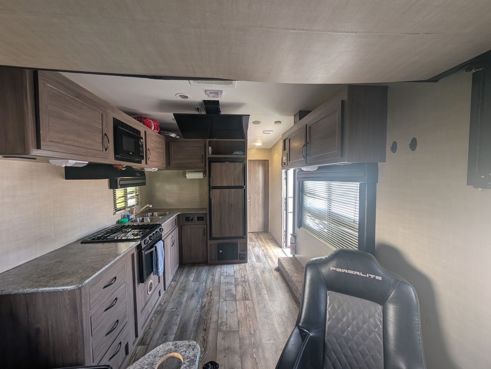 Under the Stars is a purpose-built toy hauler designed for those who want to bring adventure along without sacrificing comfort. Whether you’re headed to the dunes, desert trails, mountains, or a quiet lakeside campground, this Powerlite 24FS delivers both capability and relaxation. Inside, you’ll find a premium Helix Midnight Luxe mattress that makes winding down after a long day exceptionally comfortable. The interior layout provides space to relax, prepare meals, and enjoy time together.