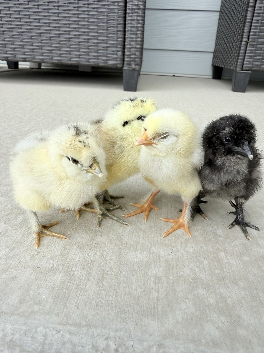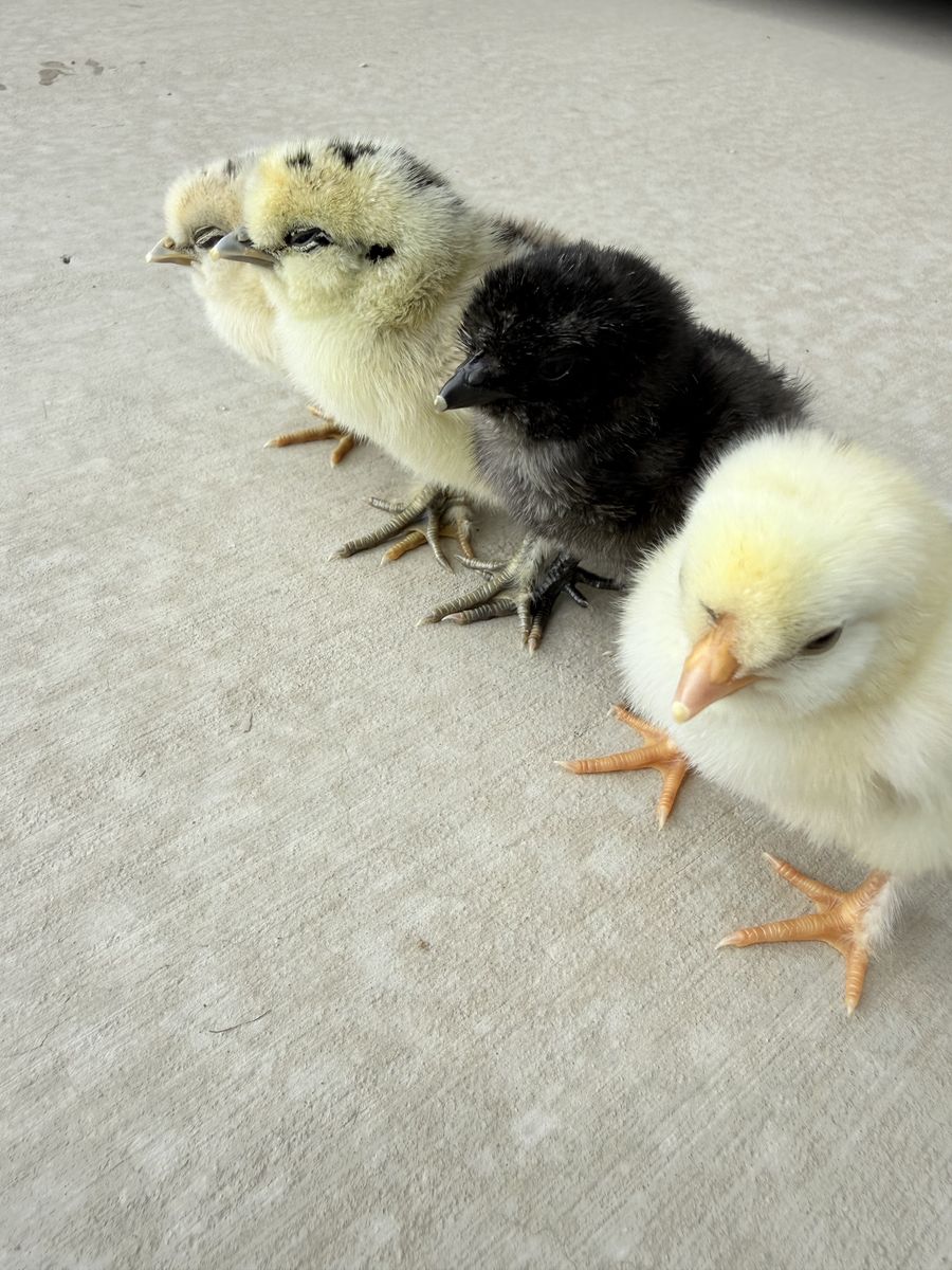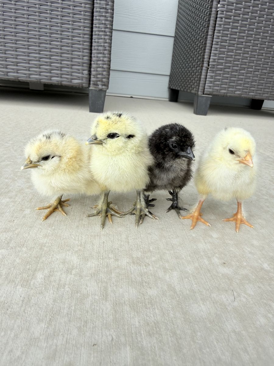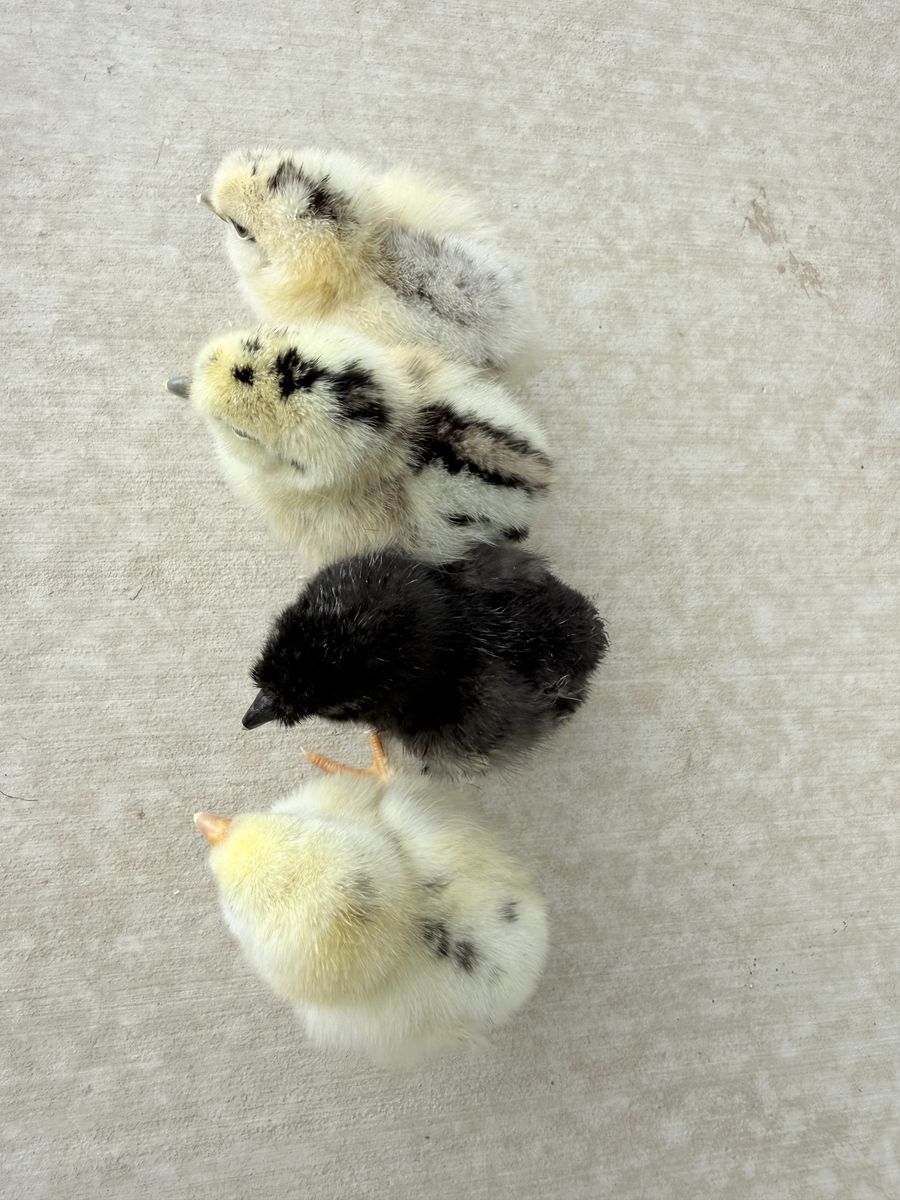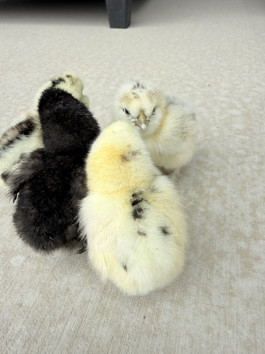 Adorable Silkie mix chicks ready for new homes. These may grow into green, blue, or brown egg layers.