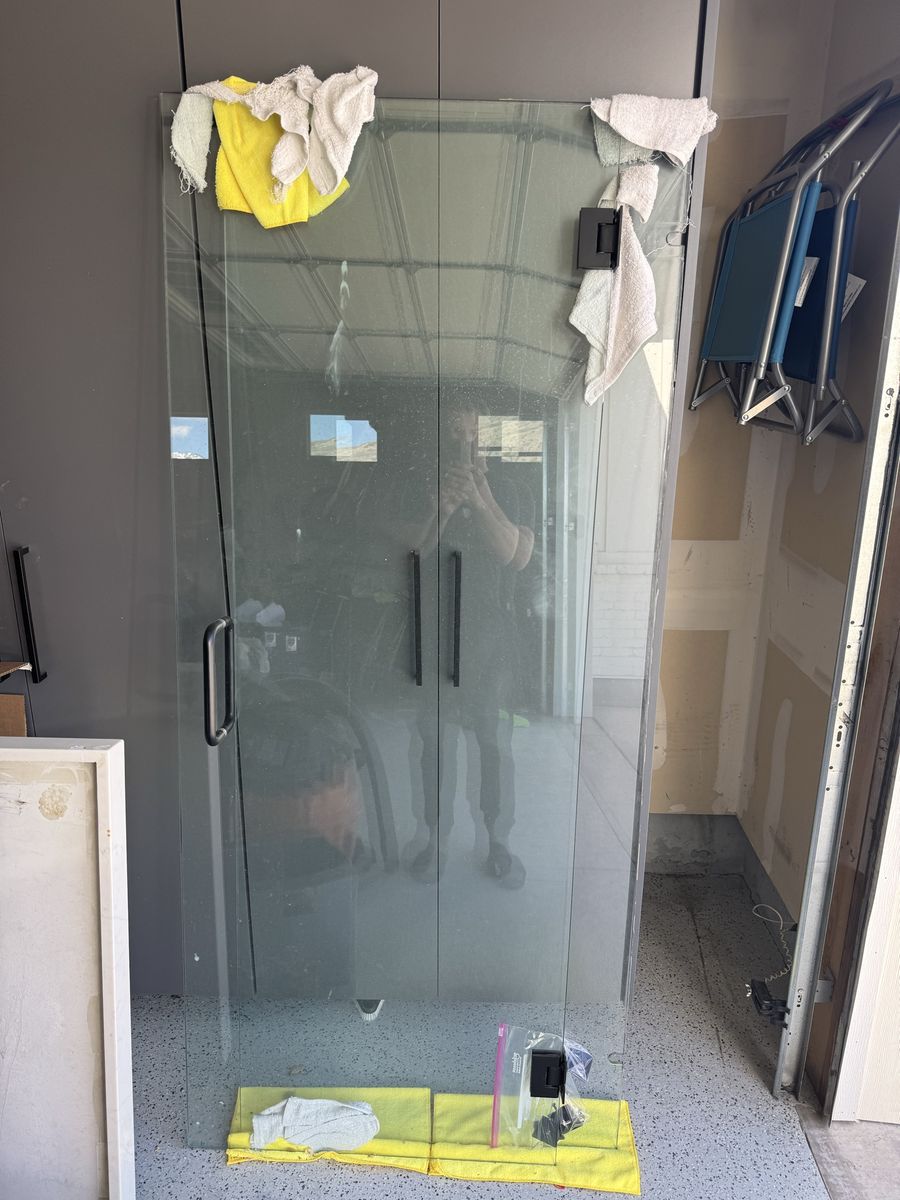 VenmoHigh-end 3/8 inch thick heavy glass shower doors. These are true Euro-style frameless panels—much higher quality than the thin glass kits found at big-box stores. They are in excellent condition and include all hardware in a modern matte black finish. Dimensions and Specs: • Glass Thickness: 3/8 inch (Heavy Duty) • Door Panel with handle: 29W x 76H • Stationary Panel: 30W x 76H • Total Span: Fits approx 59-60 inch opening • Hardware: Complete Matte Black handle and hinge set included These were carefully removed and are ready for a new home. The 3/8 thickness provides a high-end, custom look and feel. Price: $400 Note: These are heavy. Please bring a truck and a second person to help load. Located in Pleasant Grove