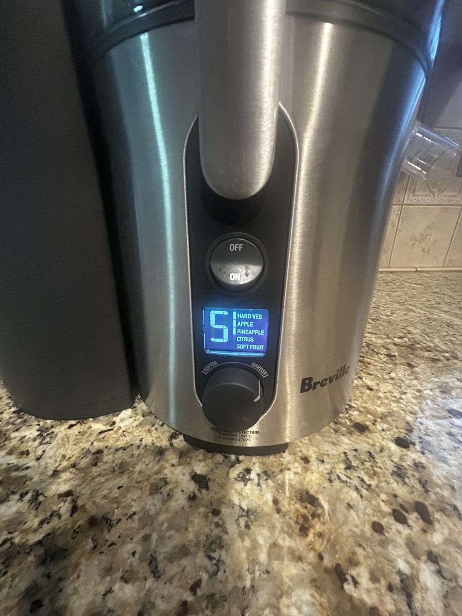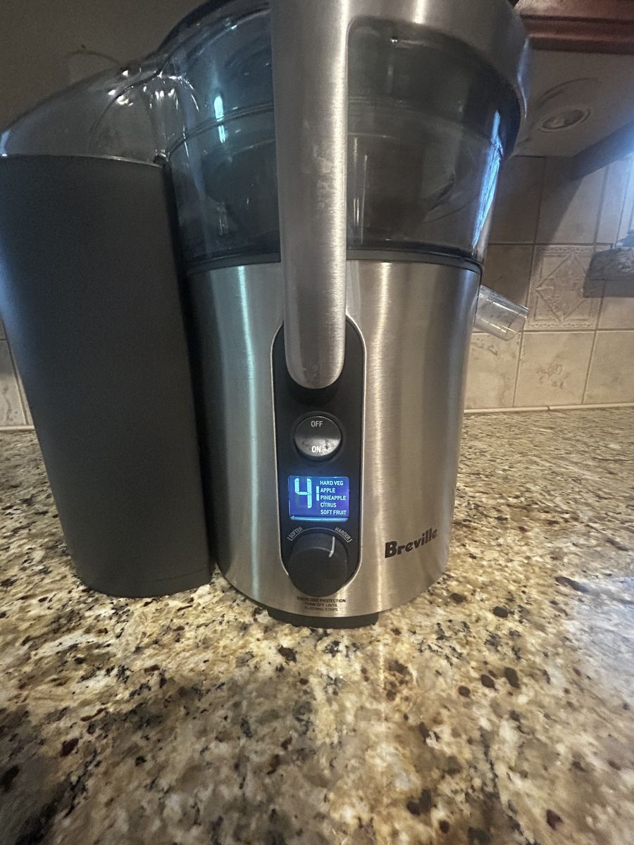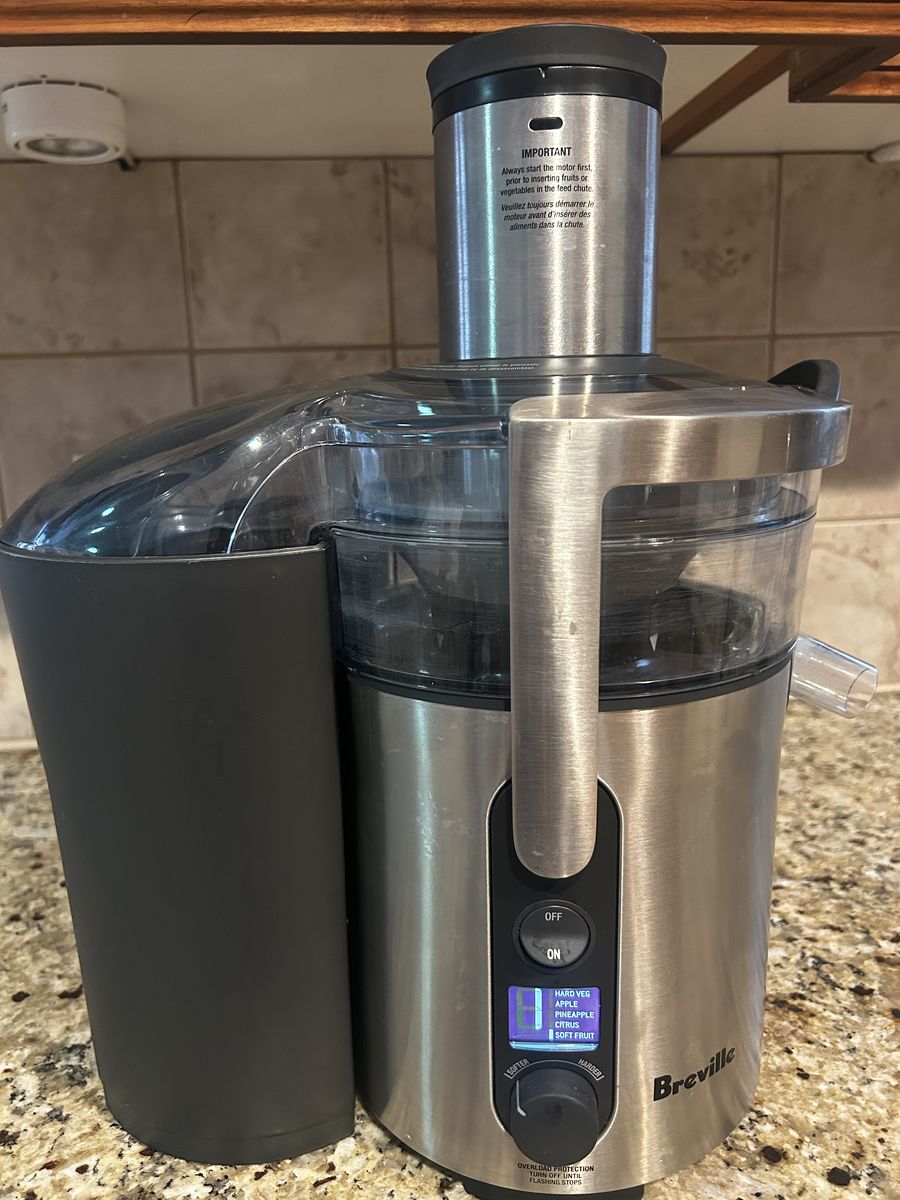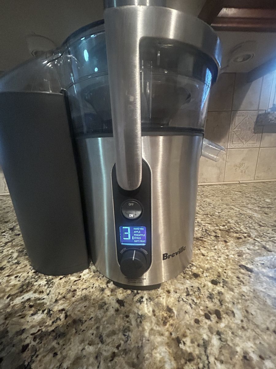 VenmoNEARLY NEW ... Breville juicer Model BJE510XL / A - 5 speed settings make this juicer more versatile, with lower speeds for softer fruits and leafy green vegetables and higher speeds to maximize extraction from dense foods such as apples and carrots. Heavy-duty 900 watt motor has speeds ranging from 6500 rpm to 12500 rpm. Unique designed juicing system features an extra wide feed chute that is centered over the shredding disc - allowing for more efficient juicing, The 3" chute eliminates the need to pre-chop ingredients before feeding them into the juicer, saving you time. GREAT for all your new year resolutions to eat healthier and live better. Smoke-free home; used gently and truly like new! $150 OBO (paid $350 new).
