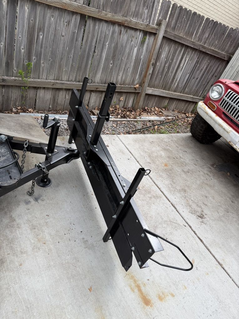 This is a 600 lb. Heavy duty motorcycle rack. For bikes, e-bikes and motorcycles. I’ve only used it a few times for my dirt bike. I’ve attached the hitch stabilizer on it as well. Powder coated and heavy gauge steel. Just call. 150.00 cash