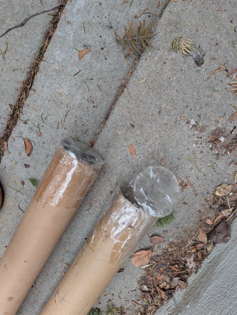 VenmoI have 2 heavy duty cardboard shipping tubes that had barbells in them. One is 7 feet 4 inches and the other is 7 feet 3 inches. Both are 3 inches inside diameter. No caps and one has a tear in it. See pics. $20 each or $30 for both. Good for craft projects too.