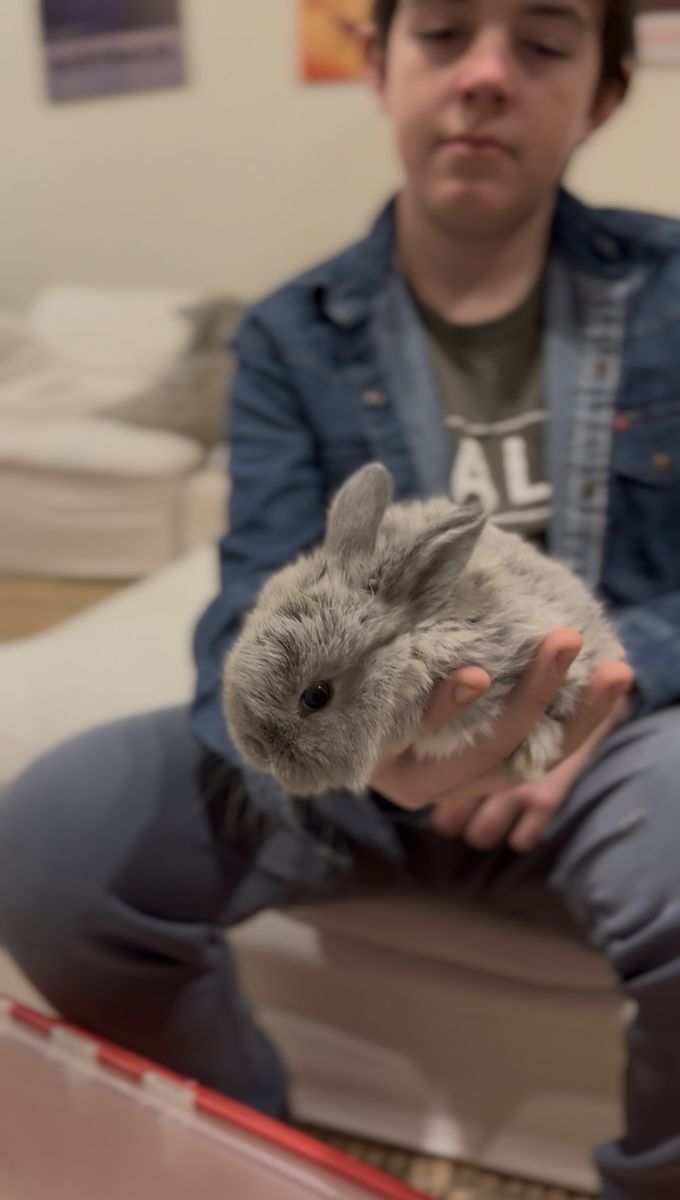 ApplePay6 weeks old. Weaned off of mom early because she had another litter of kits. This little guy is ready to find a new home just in time for Easter.