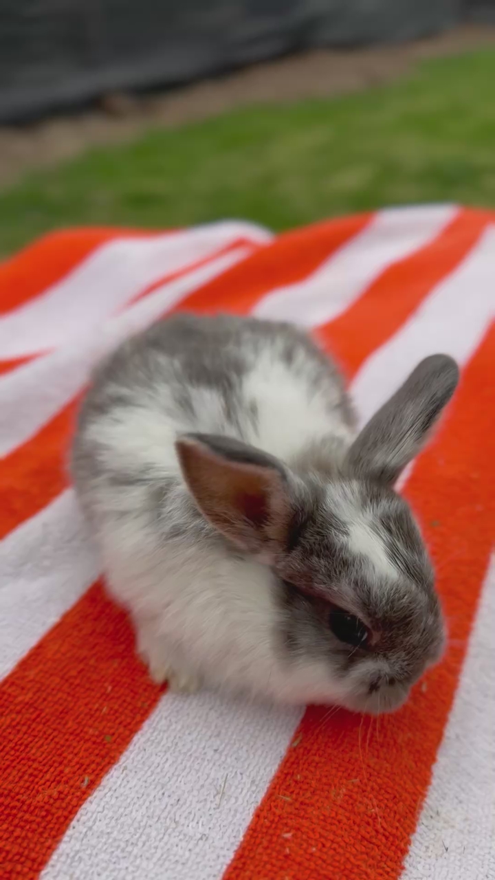 ApplePay6 weeks old. Weaned off of mom early because she had another litter of kits. This little guy is ready to find a new home just in time for Easter.