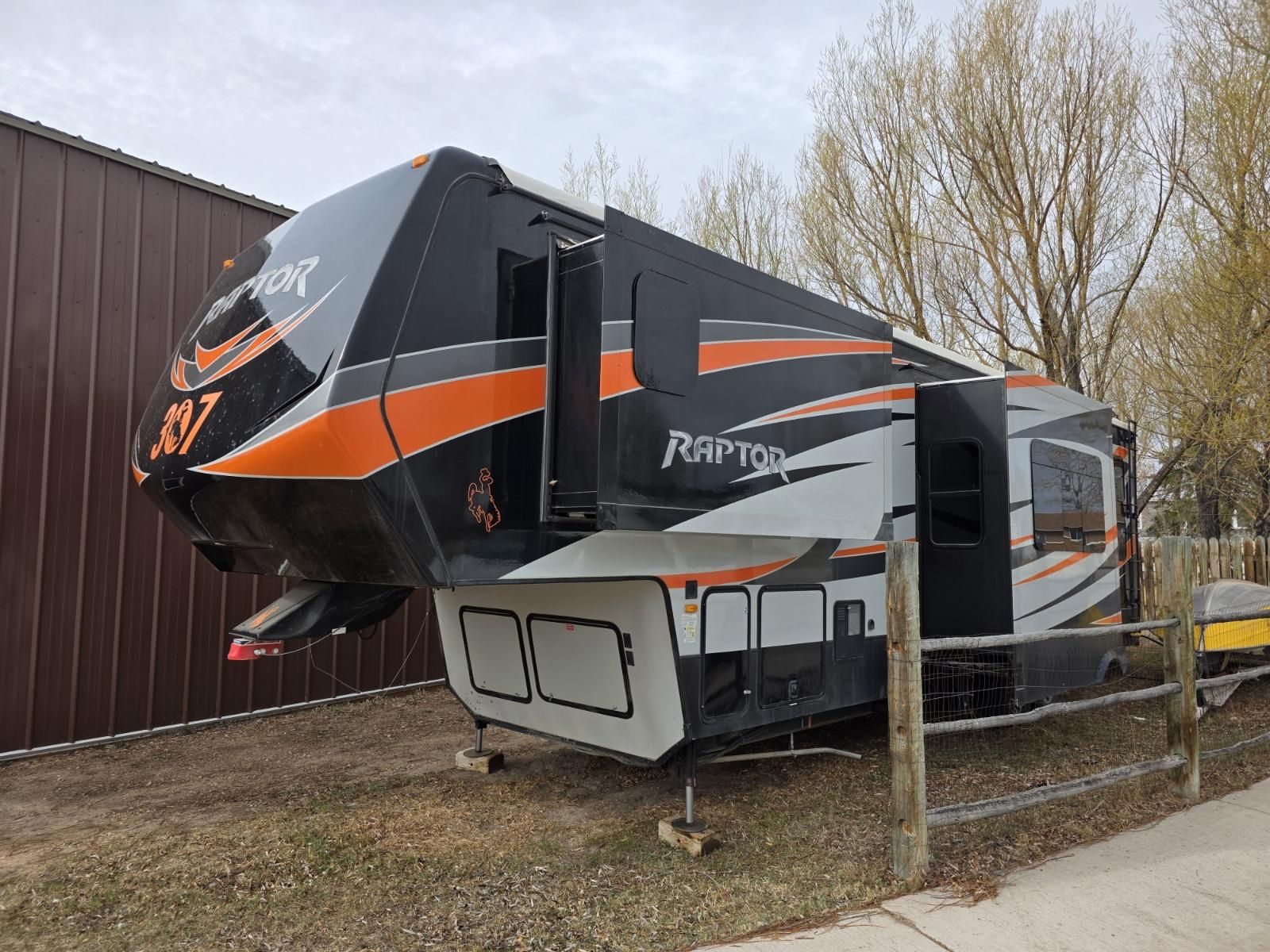 Hard‑to‑find 2015 Raptor 332TS in good condition. This triple‑slide toy hauler offers a spacious 12.8‑foot garage, premium full‑body paint, and a clean, well‑maintained interior. Loaded with comfort and capability for both camping and hauling.