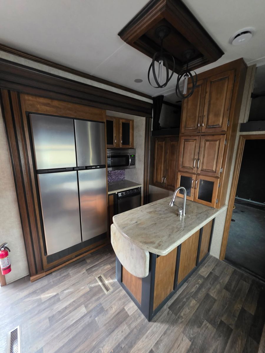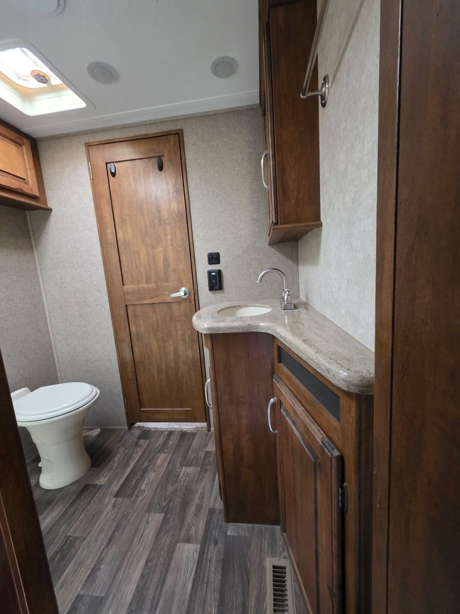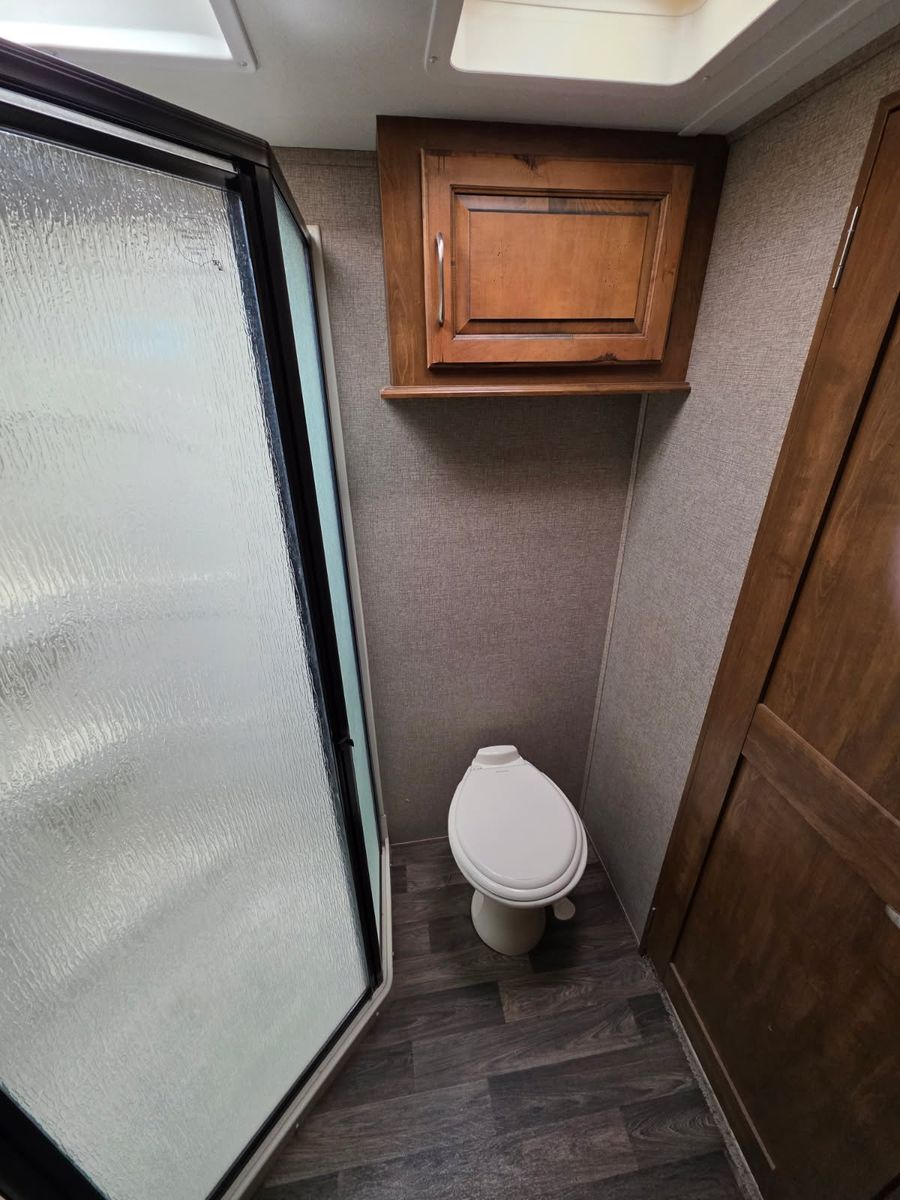 • 12.8’ separate garage with tie‑downs and ramp door • Full‑body paint (rare upgrade) • Triple slide‑outs for a roomy living area • Onboard generator (if applicable—can remove if not equipped) • Fuel station for toys • Large kitchen with solid surface counters • Residential‑style seating and entertainment setup • Master bedroom with plenty of storage • Spacious bathroom with full‑size shower • Electric awning • Dual A/C units (if equipped) • Plenty of exterior storage