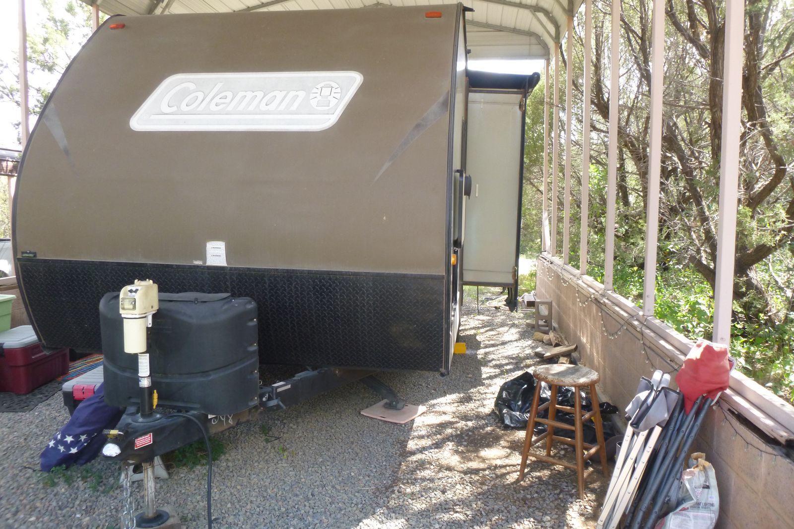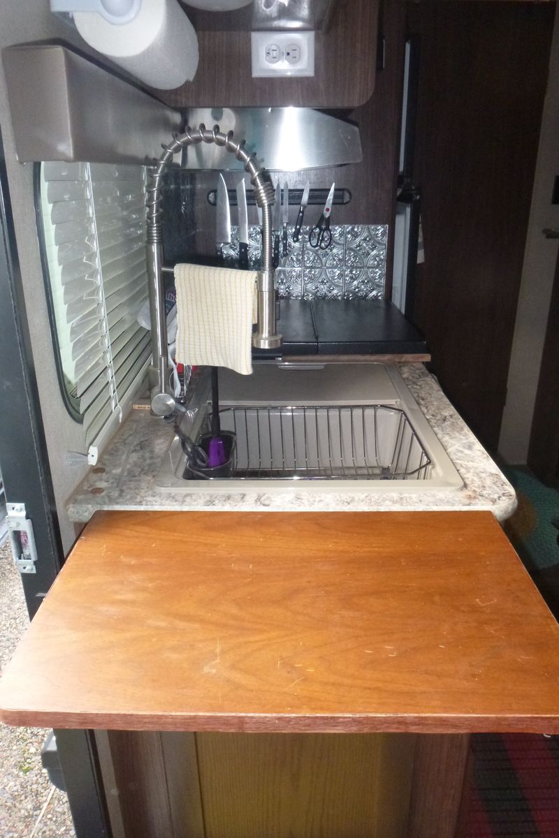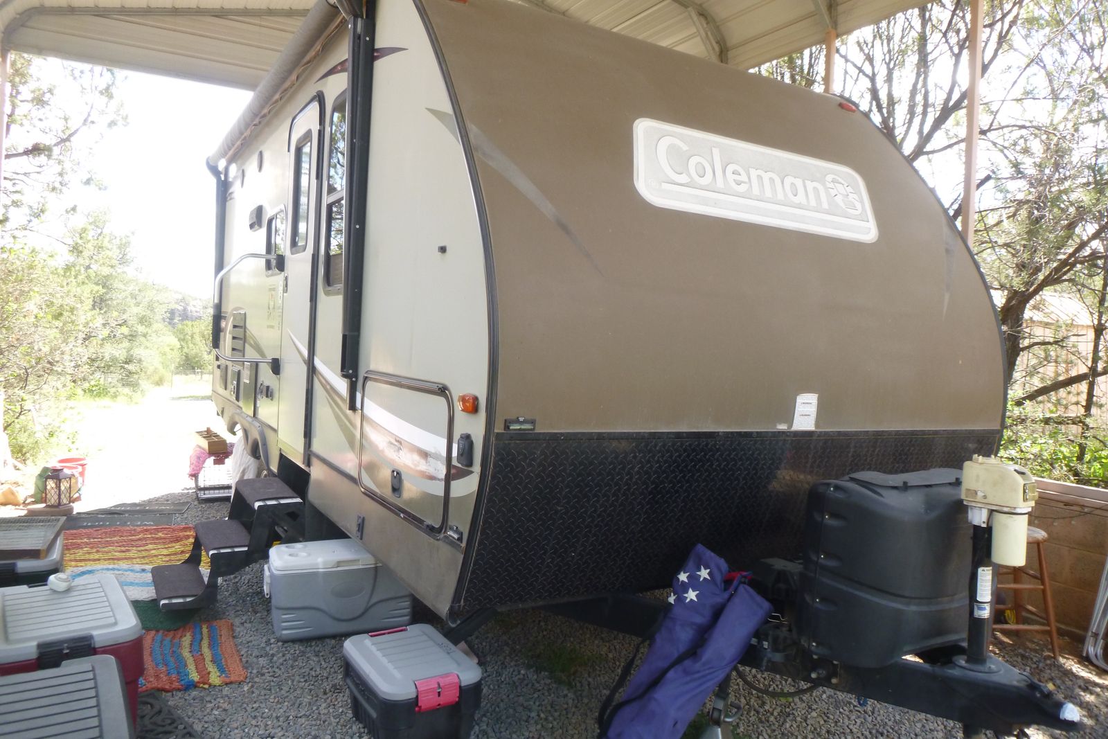 Venmo2 axels, length 22'9", sleeps 4, carrying capacity 3464, hitch weight 492. it comes with everything to just GO camping ! new tires, weight distribution hitch, rear camera. we just moved to UT & have no place to store this trailer.