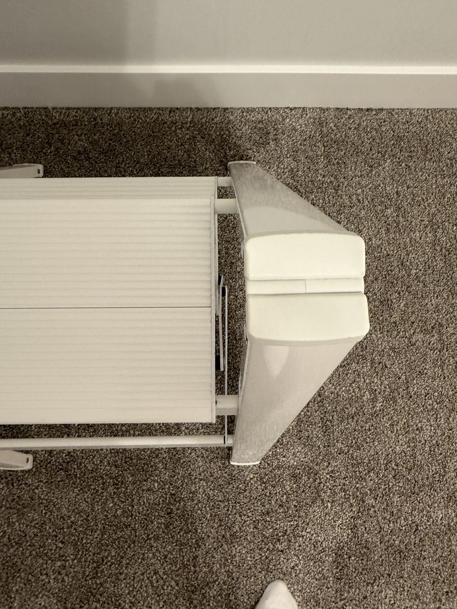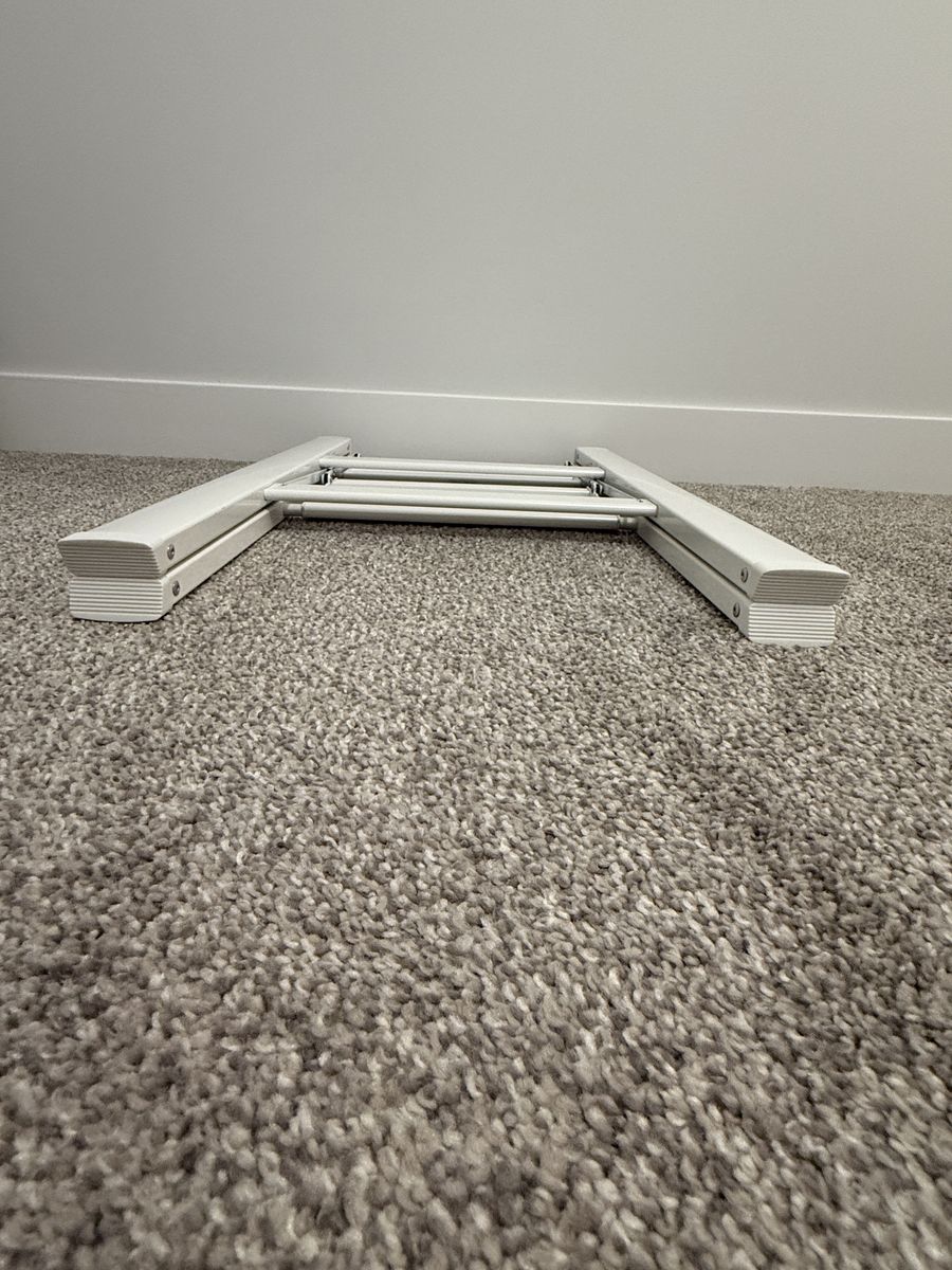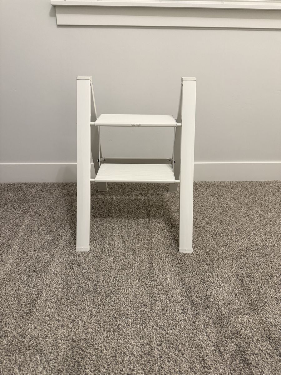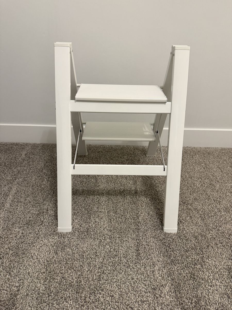 VenmoFoldable step ladder. 300 lb capacity. Anti slip pedals. Open size: 21.3 x 17.5 x 23.6 inches. Folded size: 26.2 x 17.5 x 1.9 inches. Weighs 6.6 lbs. Made of alloy steel.