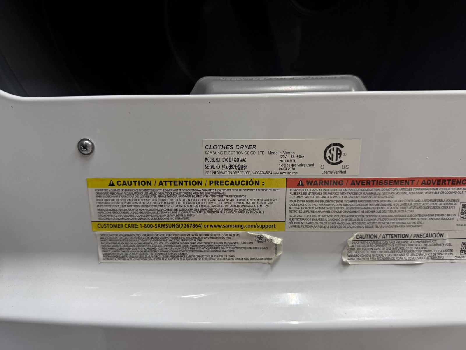 Samsung 7.4 cu ft premium gas dryer in excellent working condition. Model: DVG50R5200W/A3