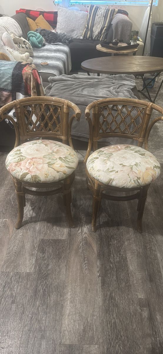 ApplePayI have two antique wicker bamboo cjhairs with removable cushions that are in great condition!! No rips , tears or stains!! Looking them up on Etsy and eBay some have sold for close to $600 and some are listed for $500! I’ll get rid of both chairs for a steal of $200! Pick up in eagle mountain! Right off point express near ridleys!