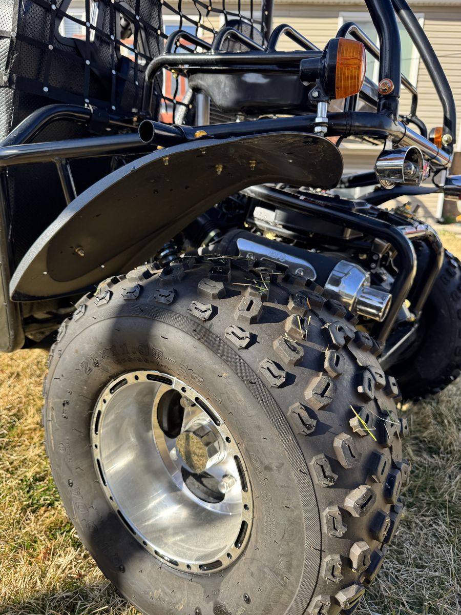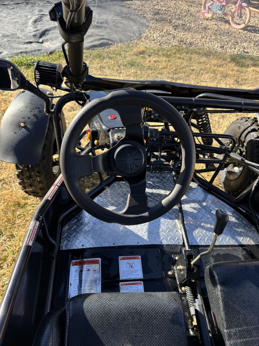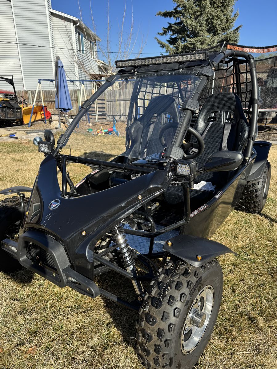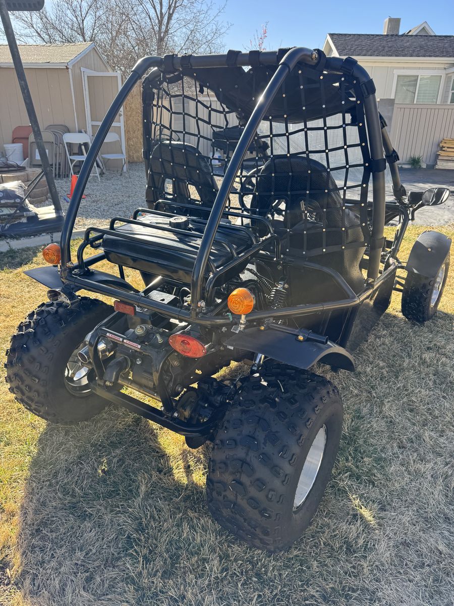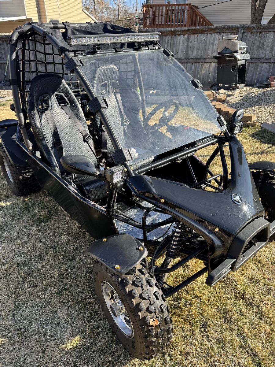 200cc go kart 2 passenger kart. Goes about 35mph has led bar with side small bars. Used a hand full of times and have no need for it. Also willing to sell a 6x8 trailer that fits the go kart perfectly for $800