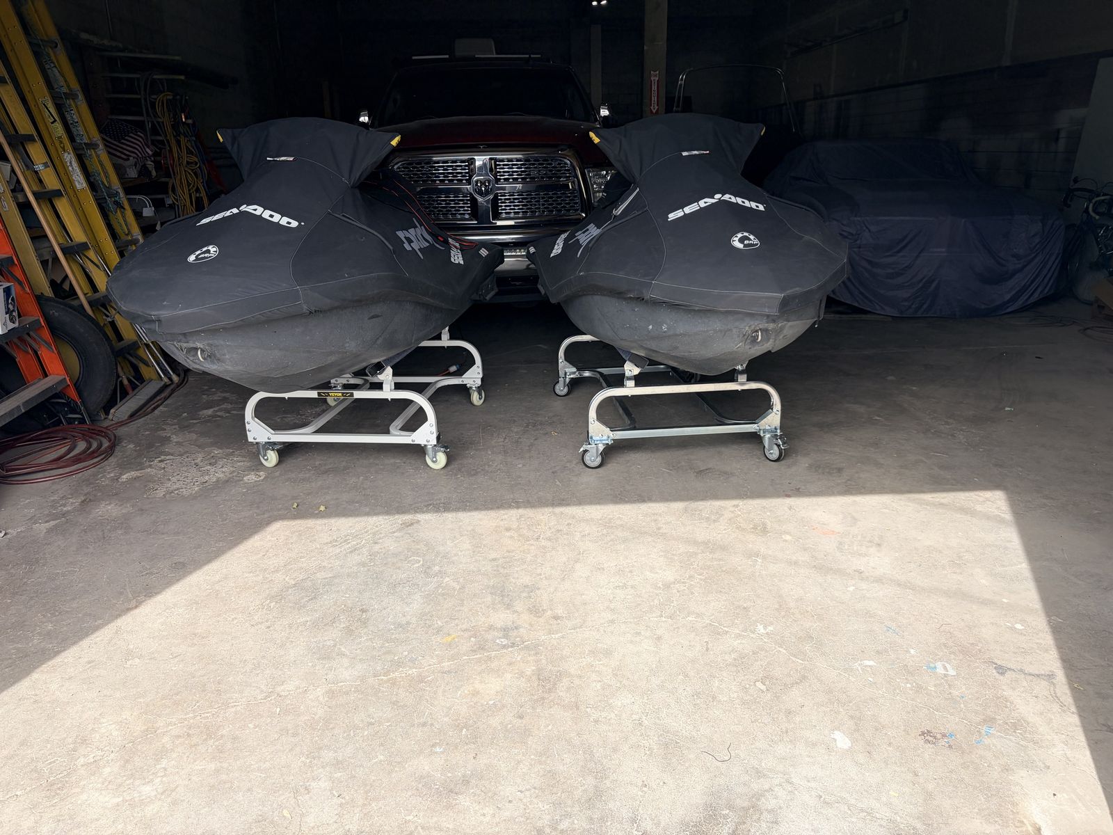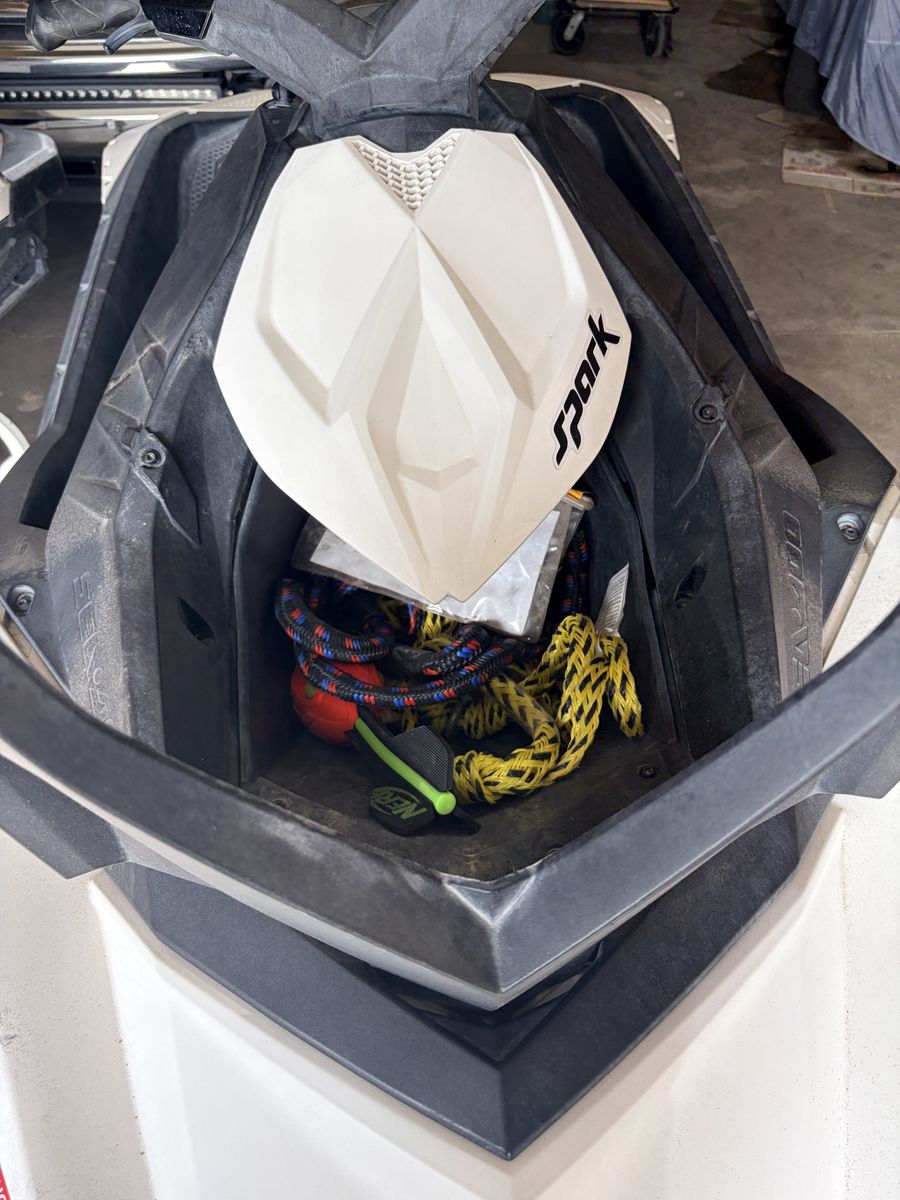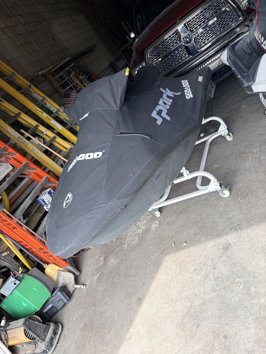 Will come with: Two service stands (seen in pictures) Two fitted Seadoo spark covers I think 6 life vests Two anchors. Spare impeller, housing, and seal for ski's. Two spare winches for trailer. Two spare bow rollers for trailer. Trailer jack and wheel chalk.