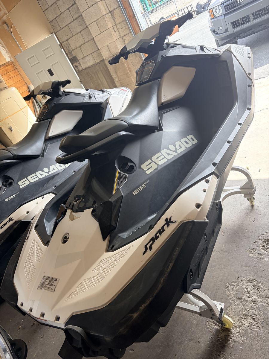 Low hour jet ski'sWe have 2 - 2016 Seadoo Spark HO 90hp 2up's with 2 place trailer for sale. One ski has 145 hrs and the other has 161 hrs. Stored in climate controlled shop. Both ski's run great, and never had any issues. They have upgraded impeller's and wear ring's. We have also added the storage bins, boarding steps, and the washout kits. Oil change and spark plugs were done last season. Ski's have never seen salt water. Title's in hand for both ski's and the trailer.