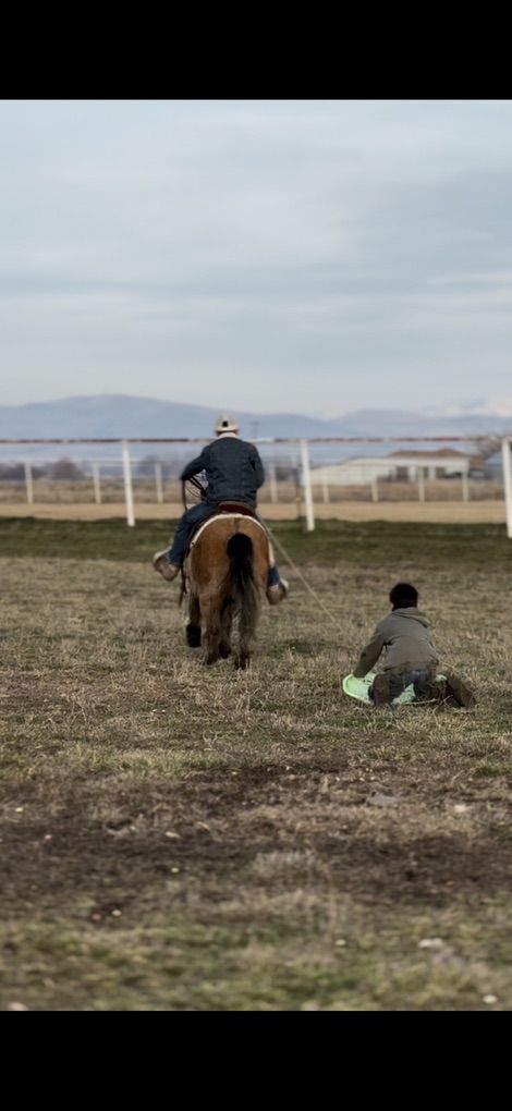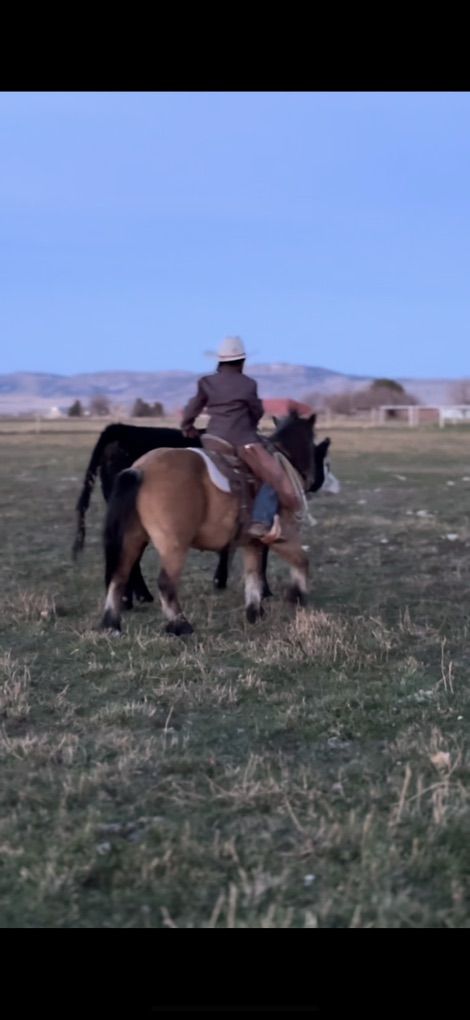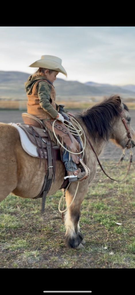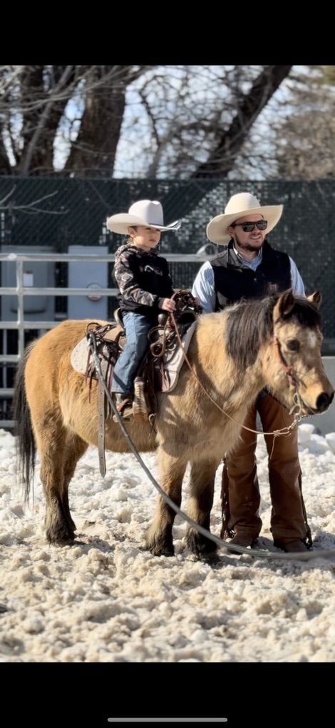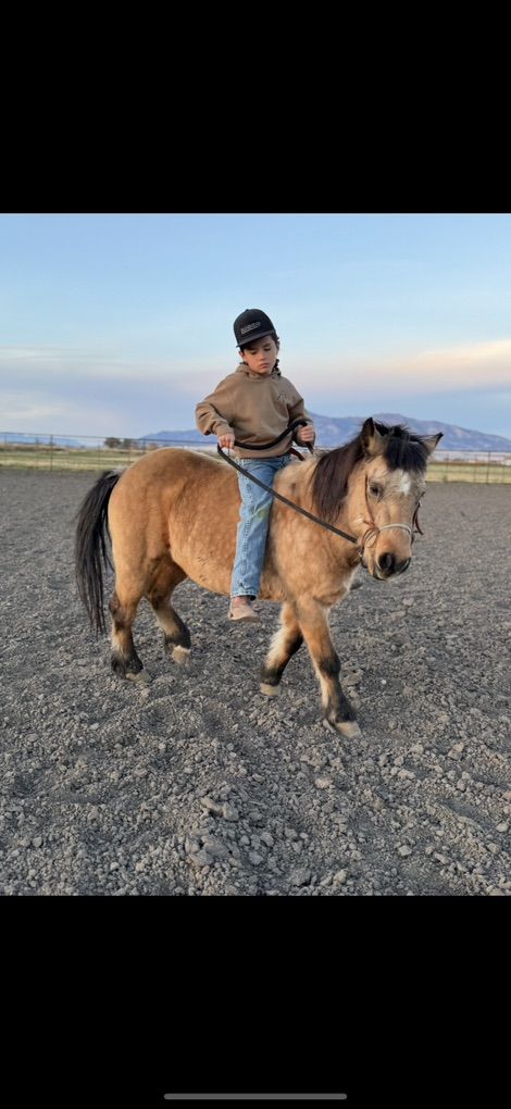 15 year old gelding pony. Suitable for all ages, really mellow and sweet. He was used as a rodeo and trail pony. He keeps up with the big horses. 45” at the withers.