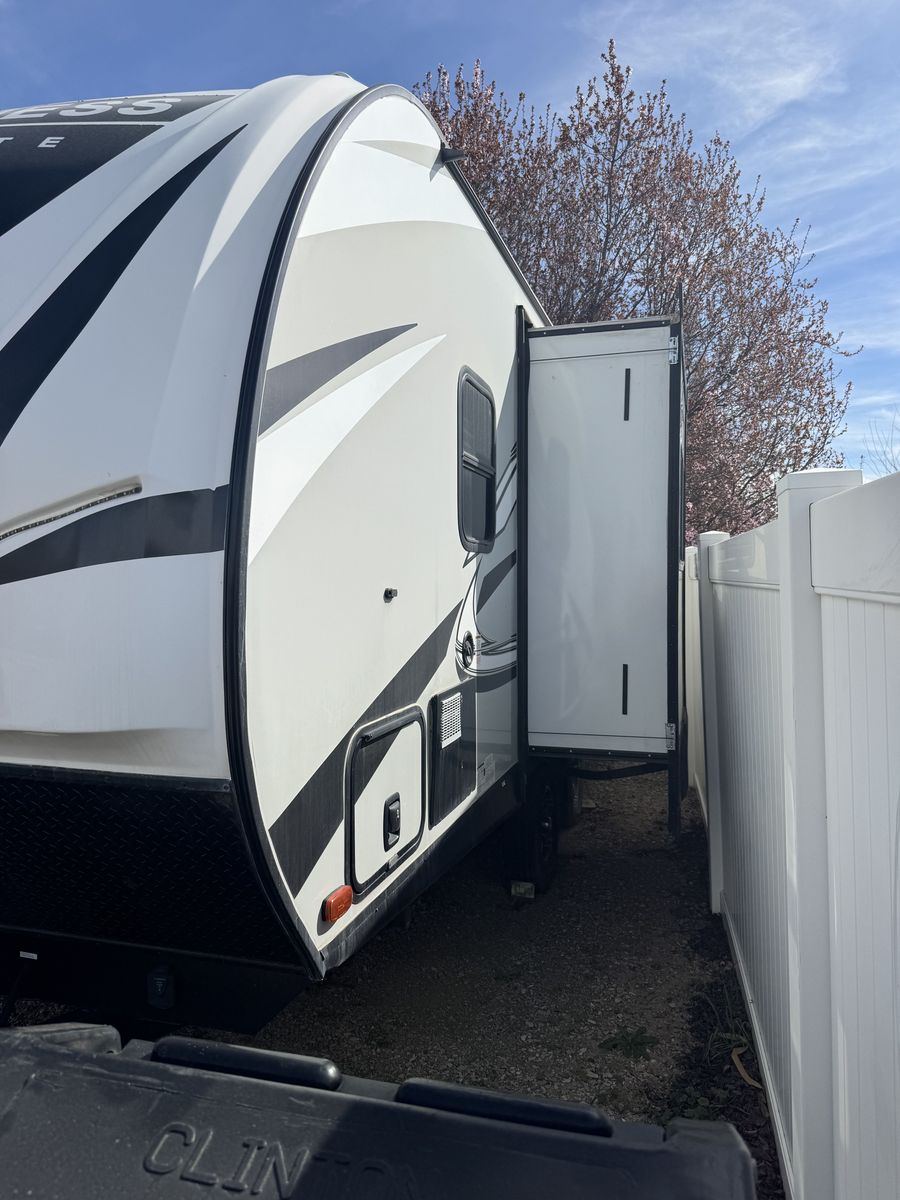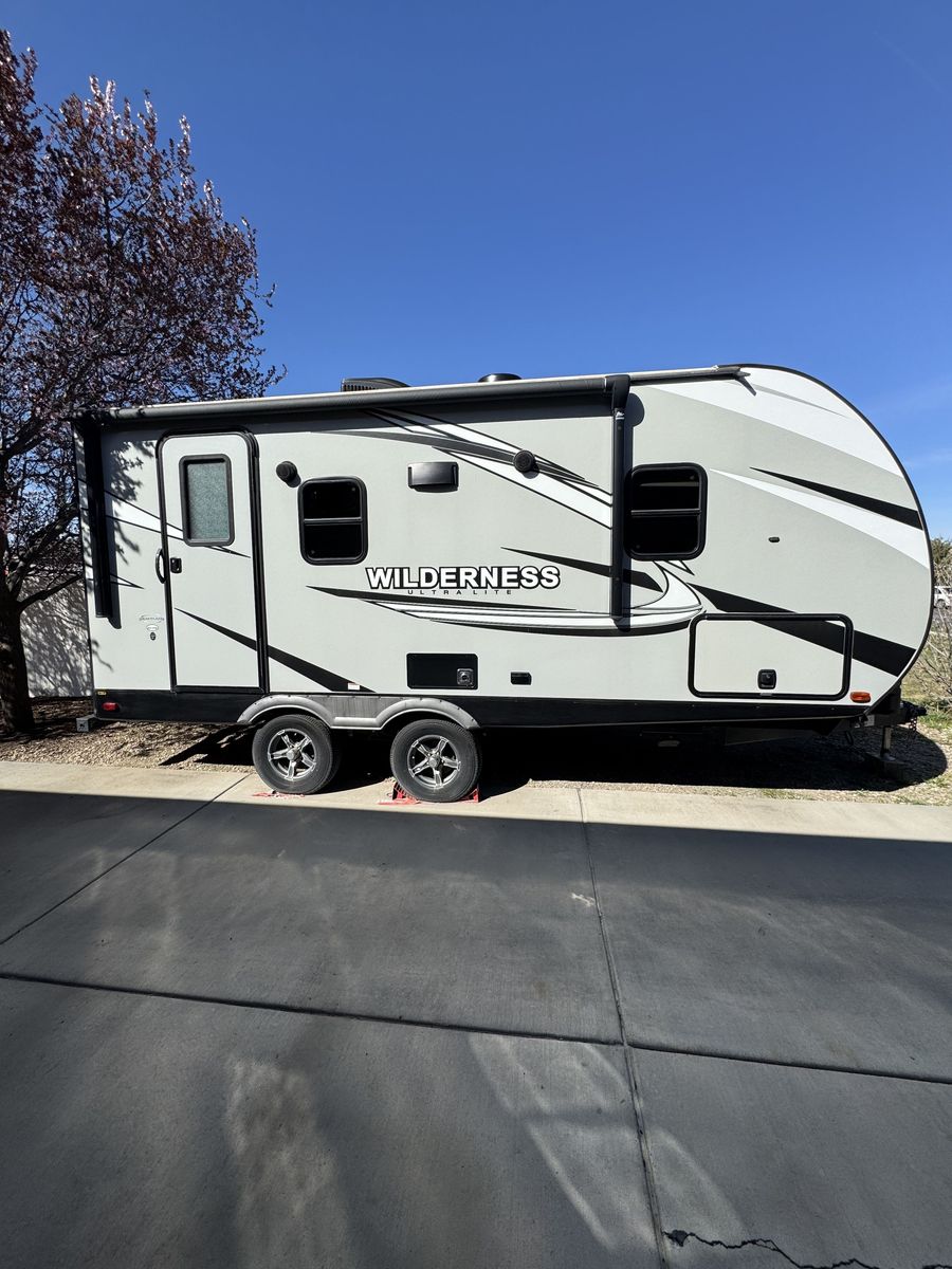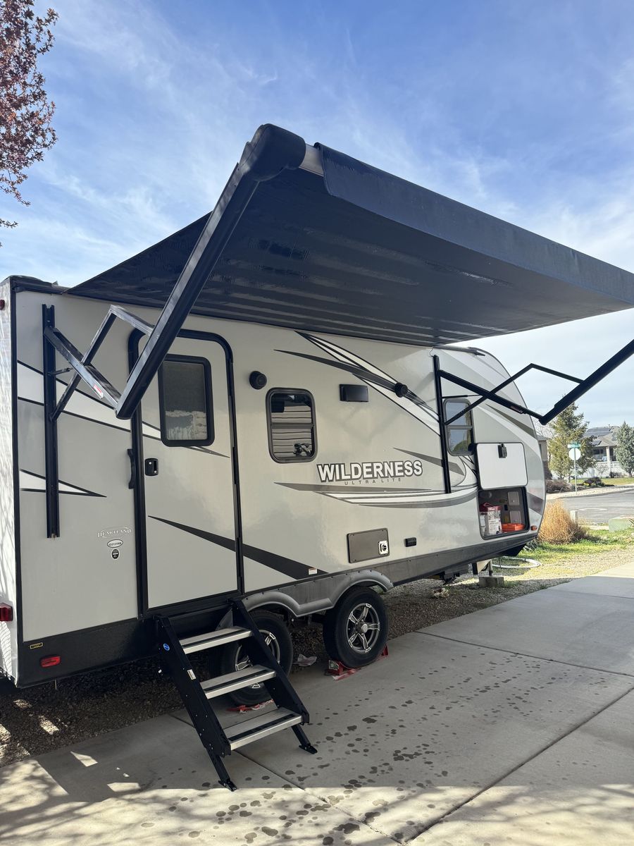 This is a good little trailer for a couple as it sleeps two people in a nice upgraded King size pillow top mattress and has two recliner chairs. it has a power slide out and a 12' power awning, power tounge jack and power stabilizer jacks makes set up and take down a breeze. Best of all this trailer is half ton pickup or SUV towable. Solar and backup camera prep. Tinted glass windows, Tandem axles, outside LED lighting, stereo with CD and a color TV with DVD, propane furnace and ducted AC, lots of extra stuff. If you have any questions please message me.