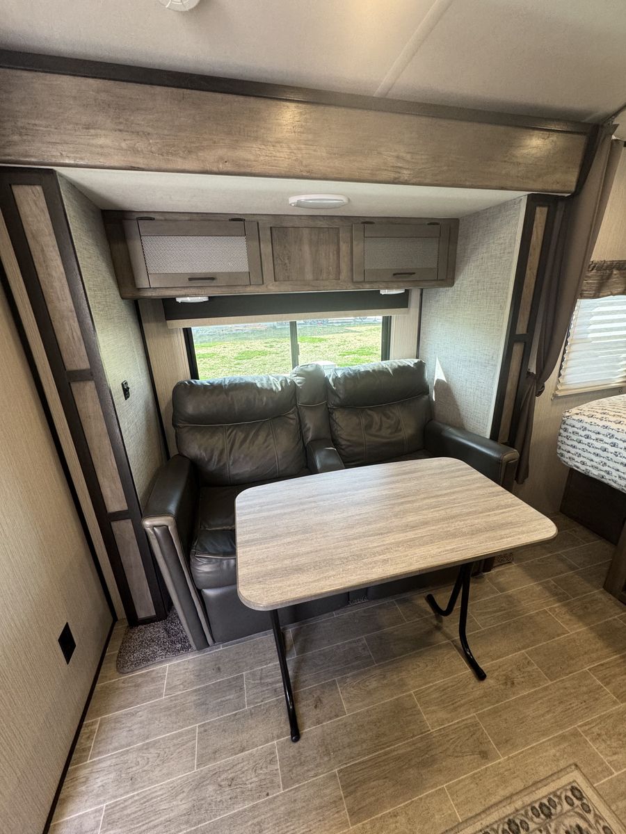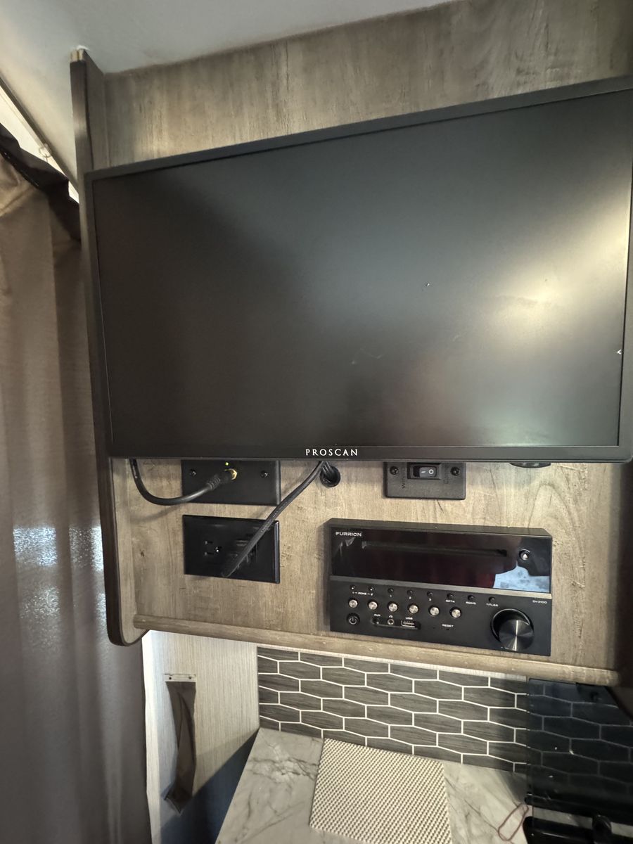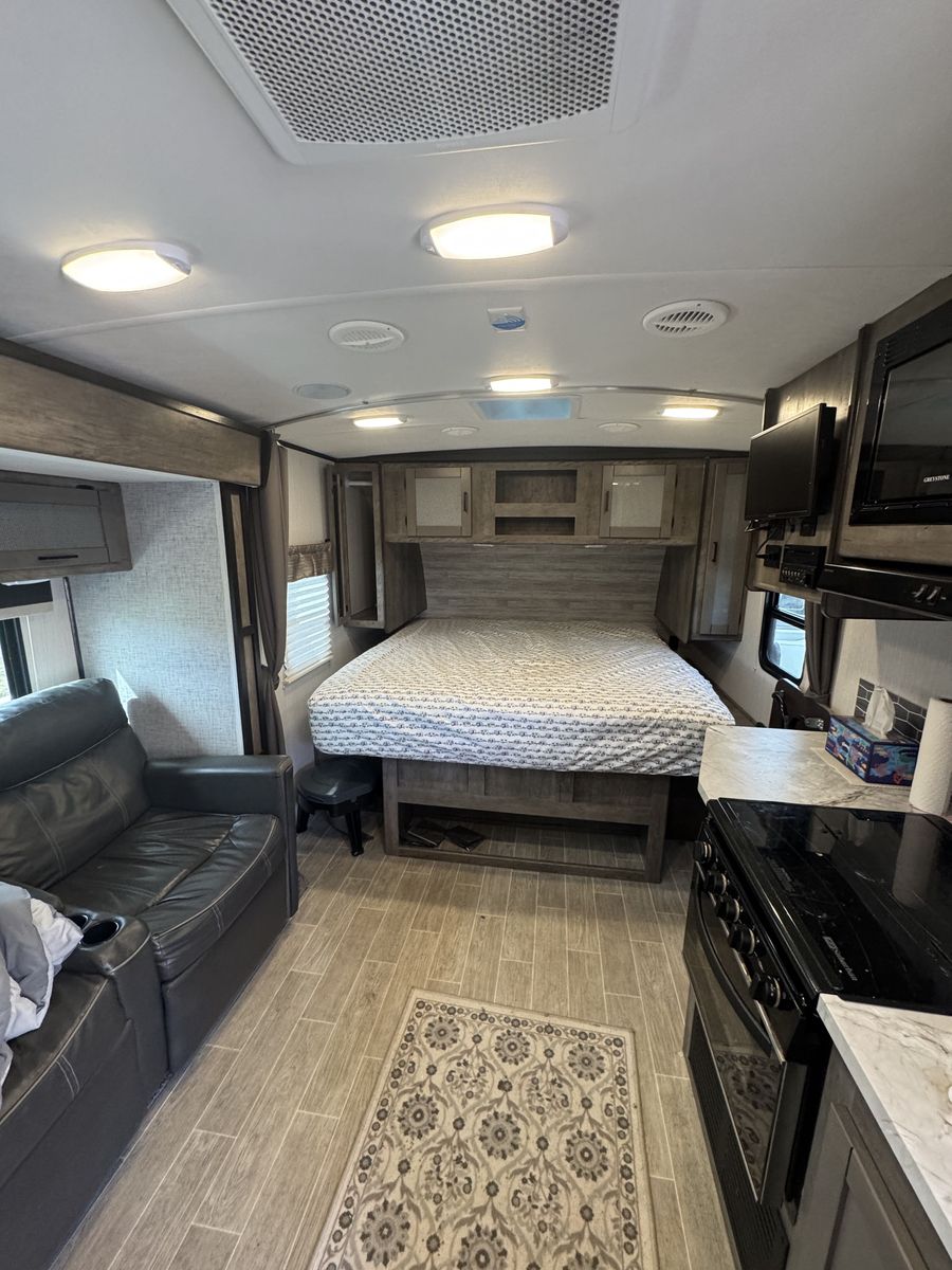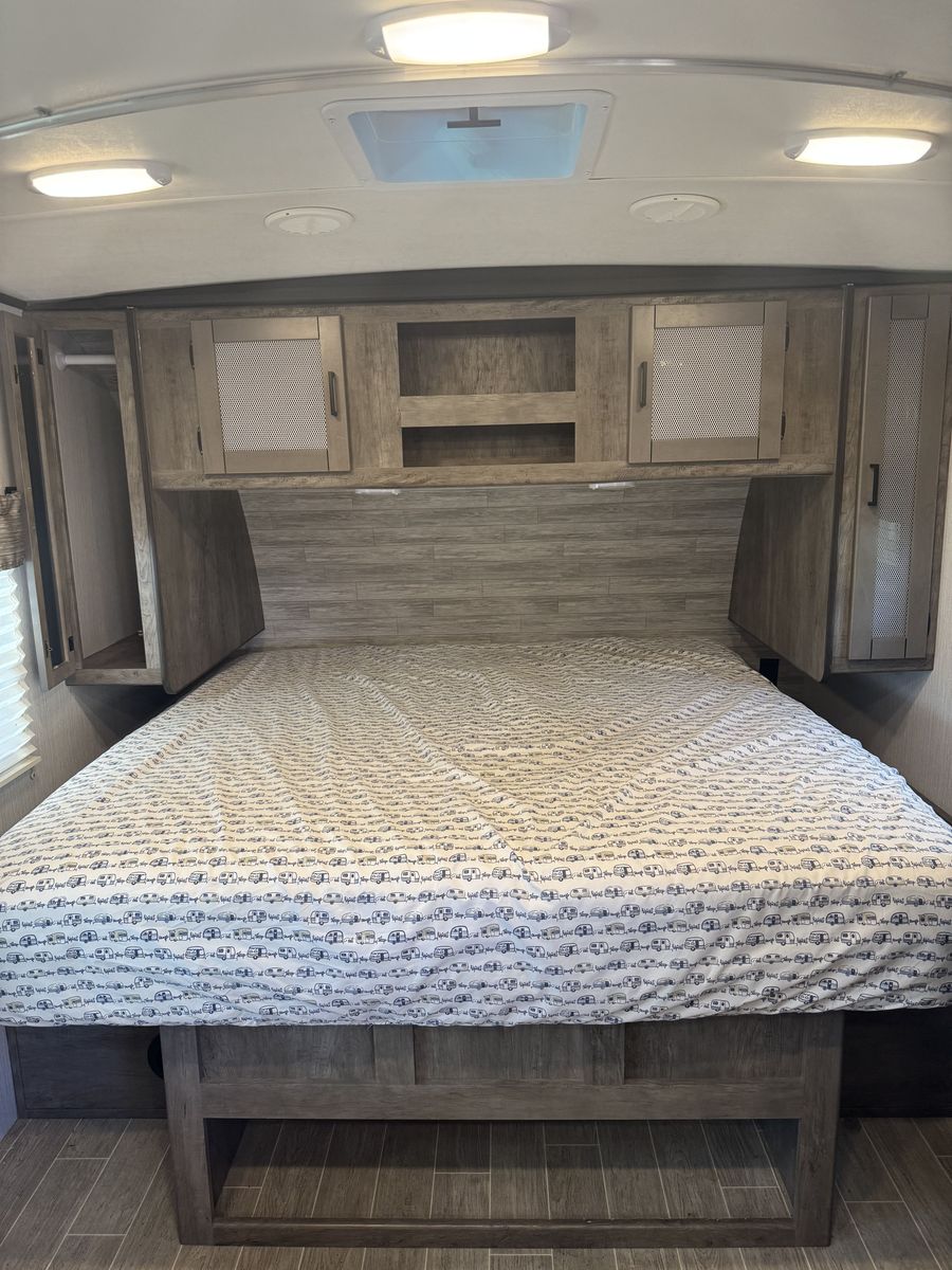 This is a good little trailer for a couple as it sleeps two people in a nice upgraded King size pillow top mattress and has two recliner chairs. it has a power slide out and a 12' power awning, power tounge jack and power stabilizer jacks makes set up and take down a breeze. Best of all this trailer is half ton pickup or SUV towable. Solar and backup camera prep. Tinted glass windows, Tandem axles, outside LED lighting, stereo with CD and a color TV with DVD, propane furnace and ducted AC, lots of extra stuff. If you have any questions please message me.