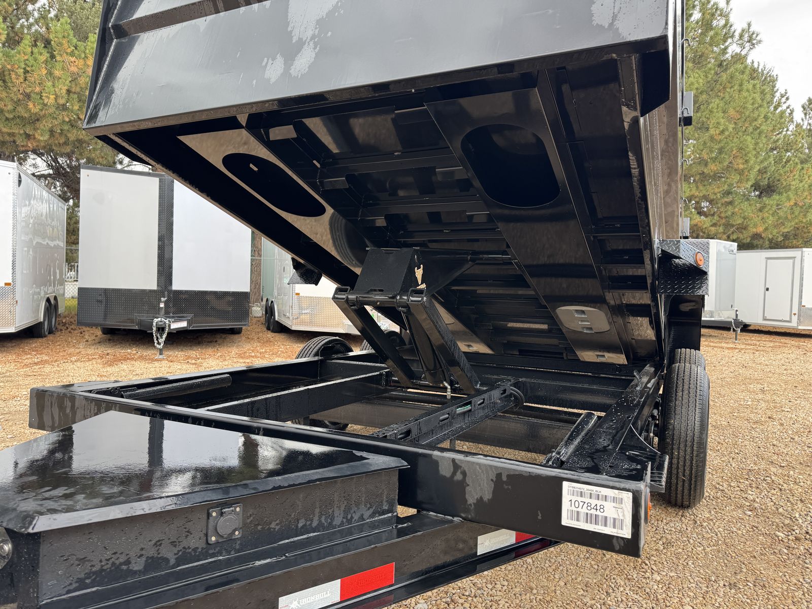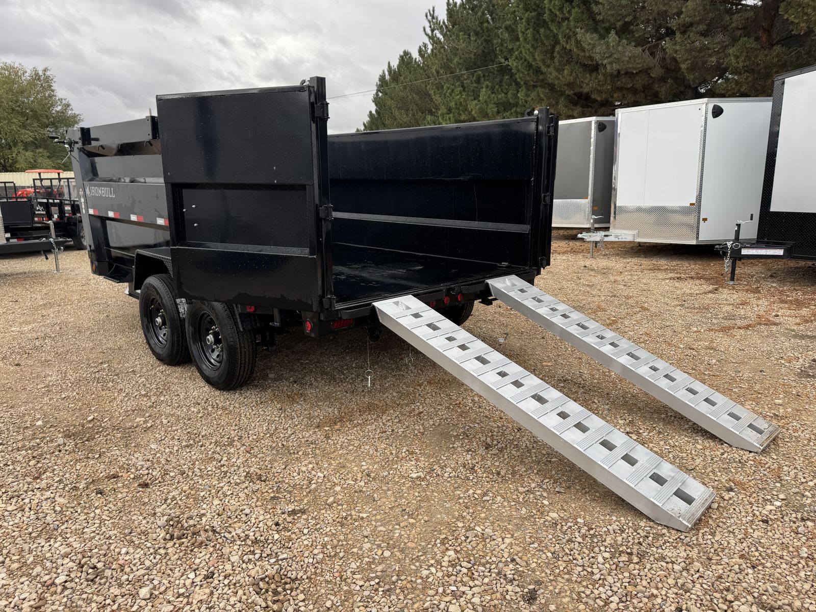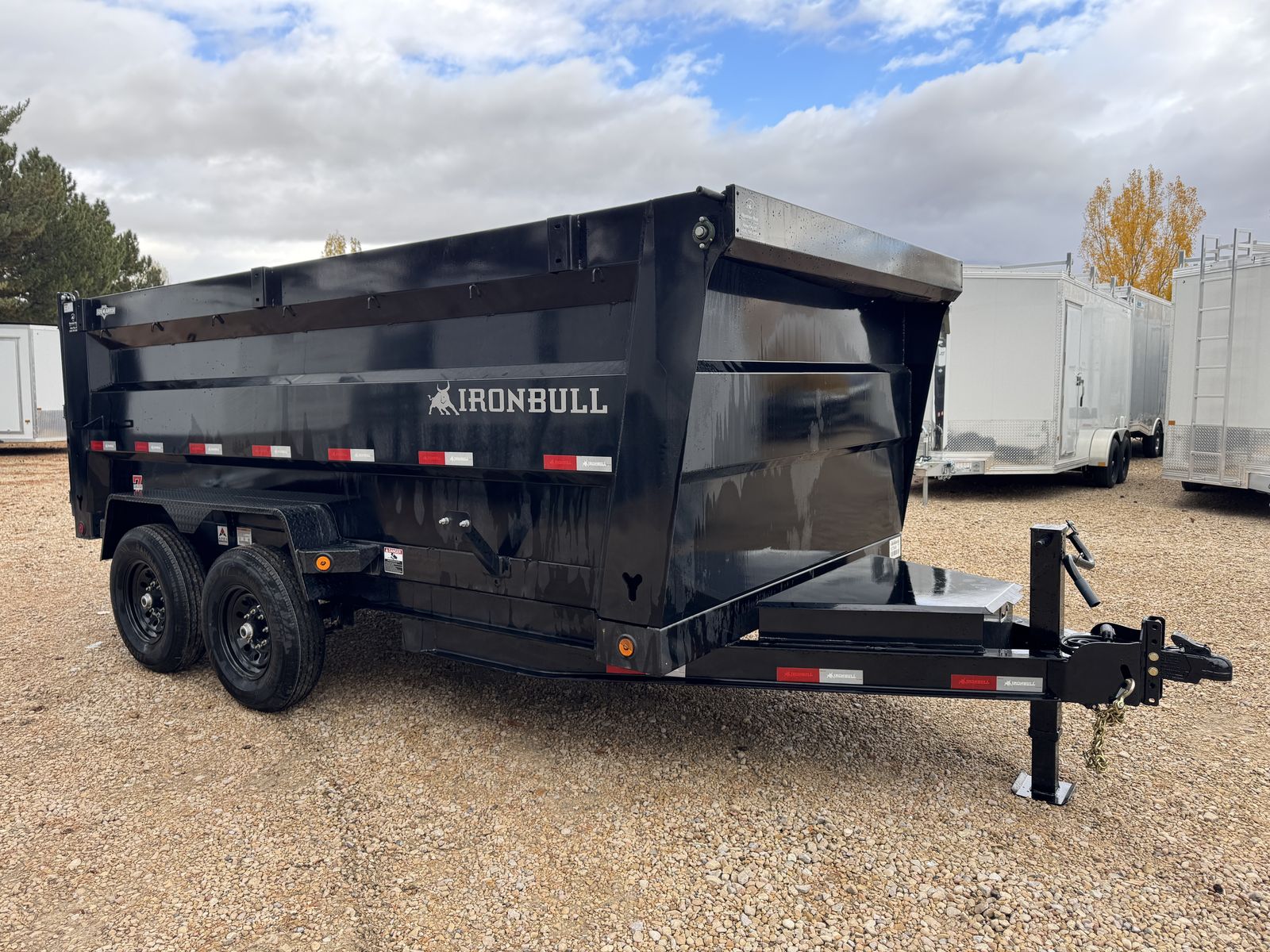 Introducing Iron Bull's NEW DTB MODEL! With 14,900 lbs capacity, these 83" wide dumps are built tough. Features include a 7-gauge floor, sturdy 10-gauge sides, and unique under-bed structure. Plus, full-length bed runners, 10k jacks, and a three-way gate for flexibility. Equipped with brake axles, radial tires, and a durable powder coat finish. A scissor hoist, TecNiq LEDs, and a deep cycle battery ensure reliable performance. Standard accessories: tarp kit, spare tire mount, and more. Backed by our IronClad warranty. Conquer your hauling tasks with Iron Bull!
