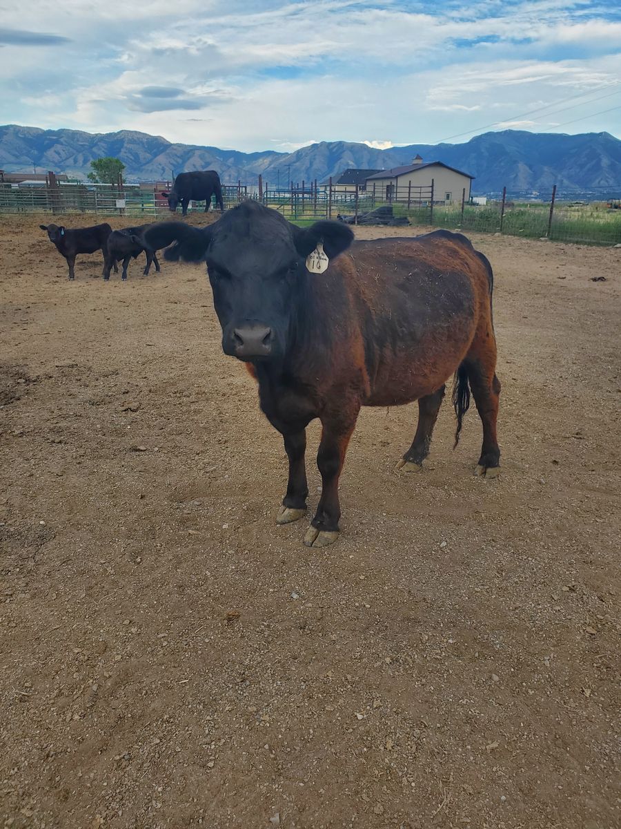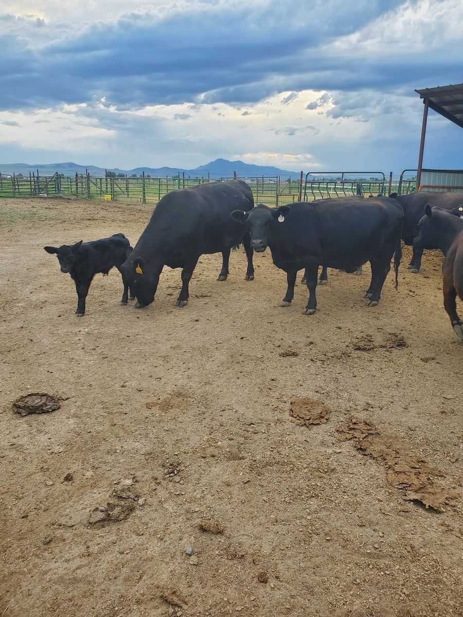 3 Aberdeen/lowline cows 1 calf