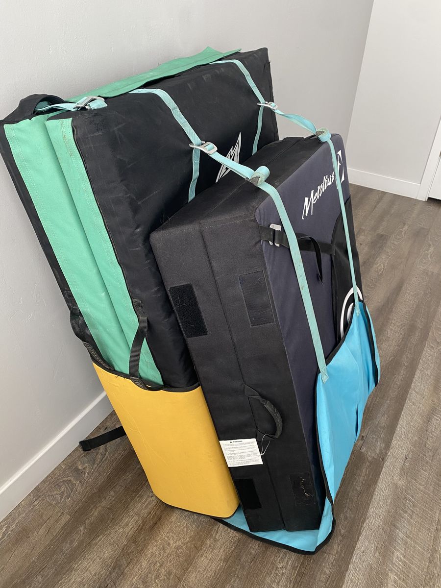 2 rock climbing crash pads for sale, want to sell together. Both in excellent condition and only used outside a couple of times. No problems with anything, everything works as should. Combined retail price is $470 before tax. CASH ONLY