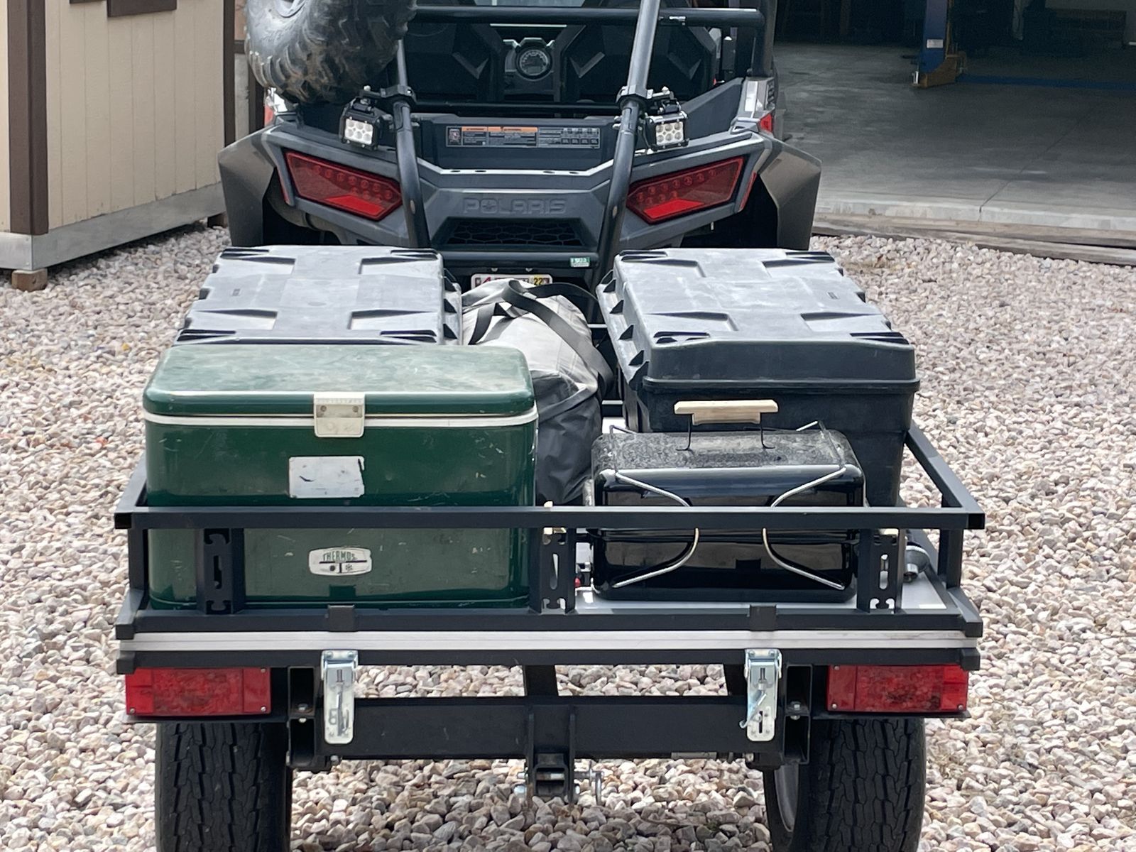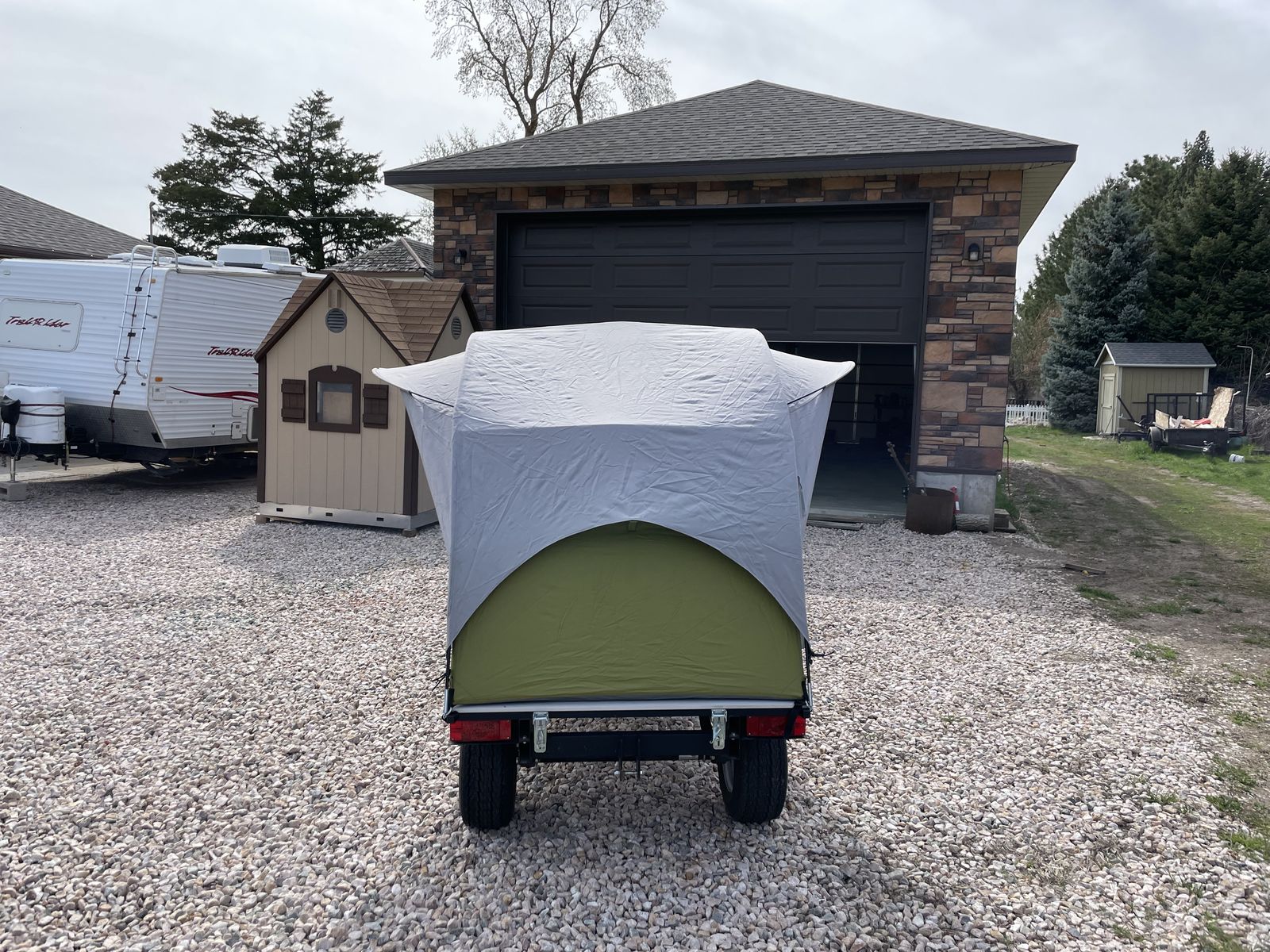 Small tent trailer 4’x4’ folded 4’x8’ unfolded can be pulled with UTV or car.