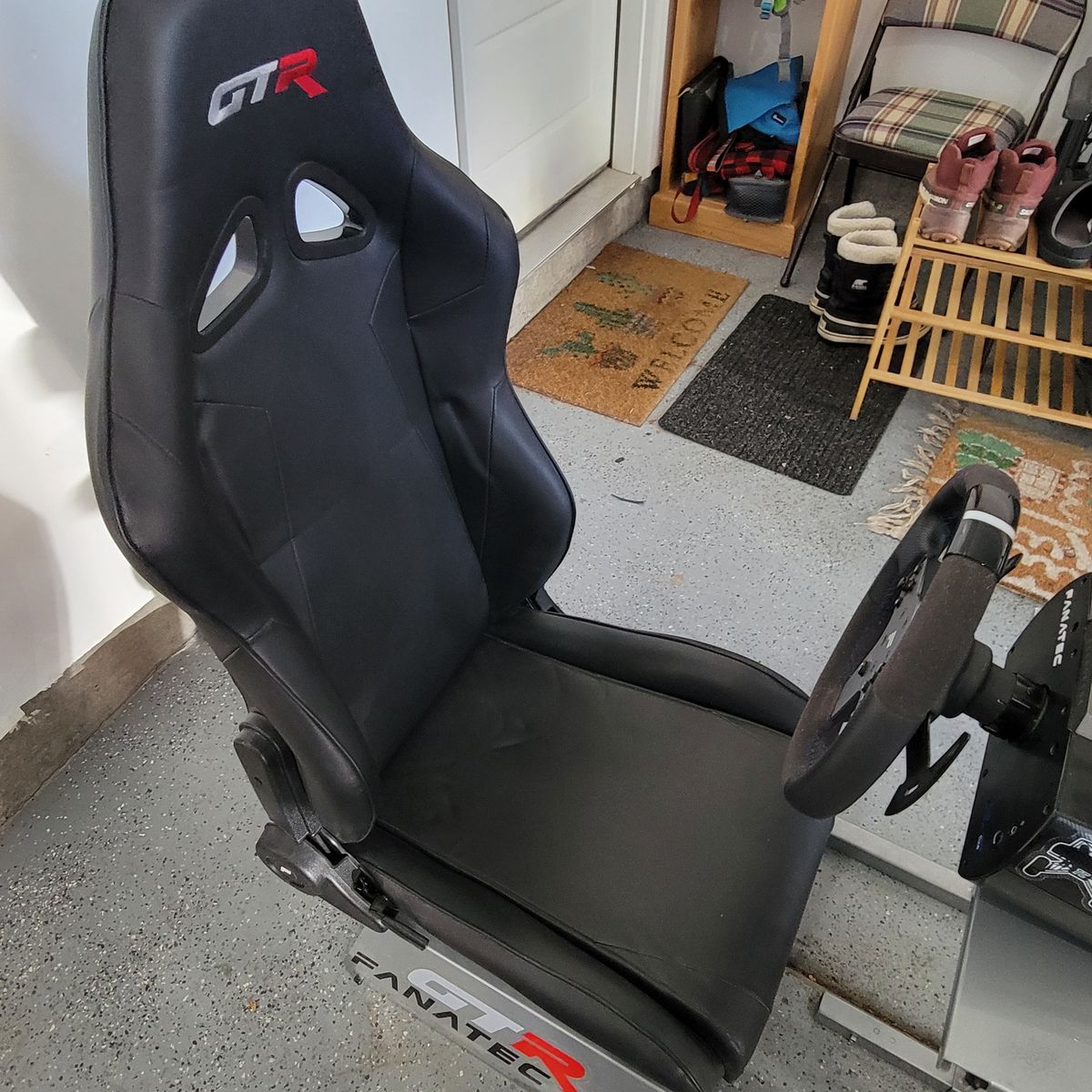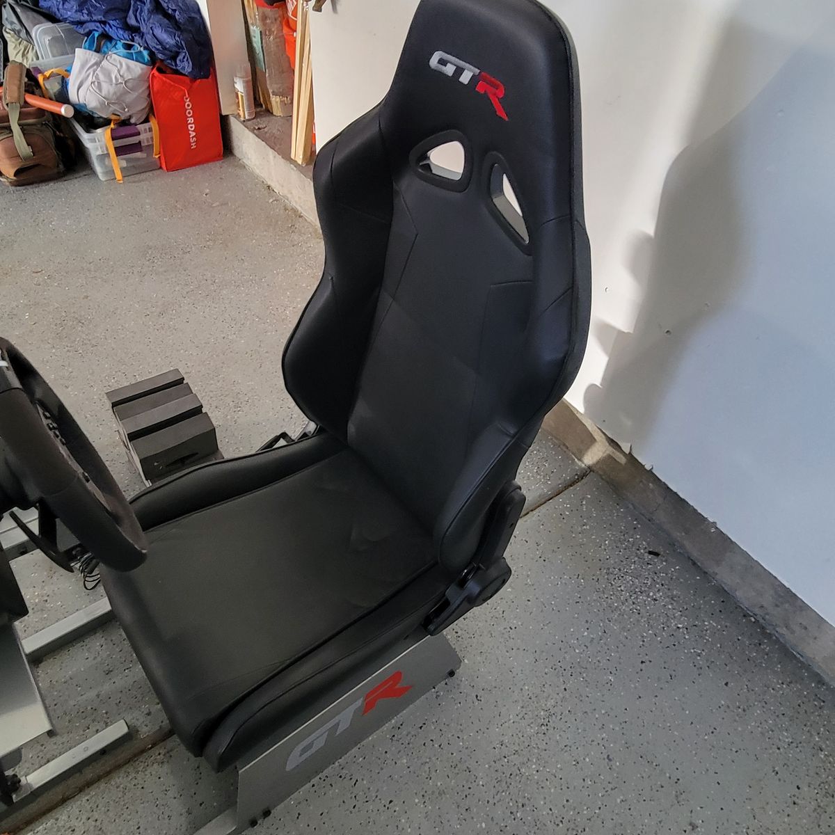 GTR Racing Chair with Black Frame ($350-$500 value new): Pedal Plate, and Steering Wheel