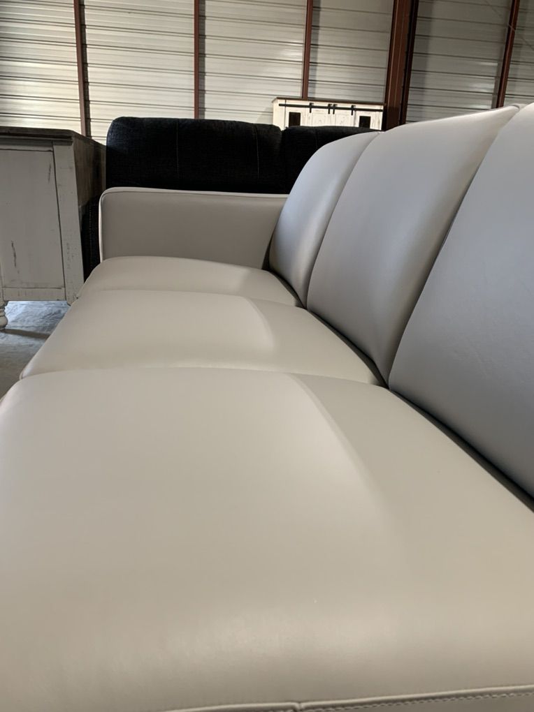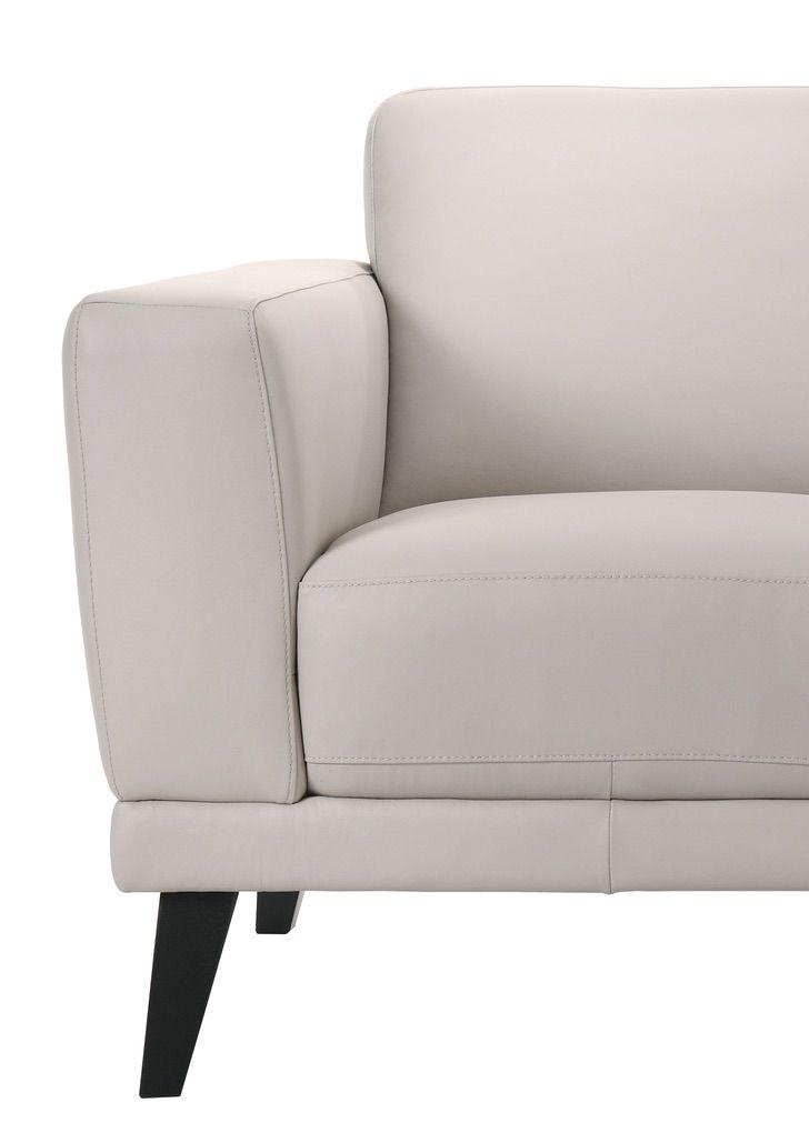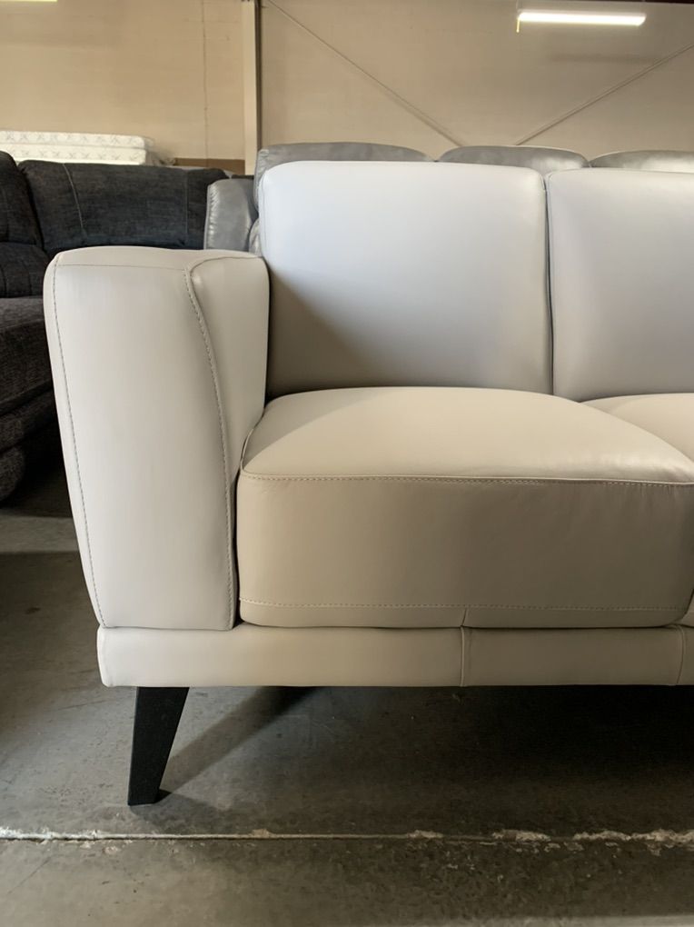 ApplePayThis gorgeous color ultra mist grey has that perfect on trend neutral color. The sleek and tapered down legs combines sophisticated style with casual comfort. All in soft, supple, top-grain leather, with padded armrests that add visual elegance. Plush and stable support for spacious seating.