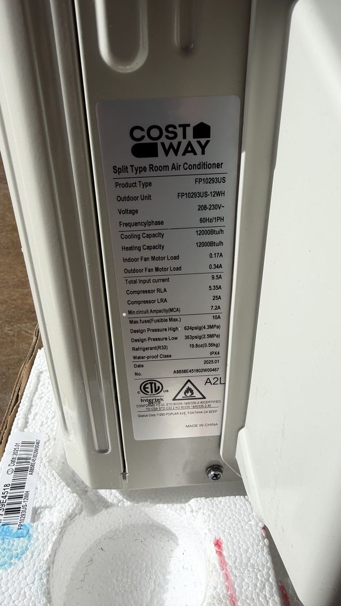 Costway Mini Split Condenser (New) + Line Set Included