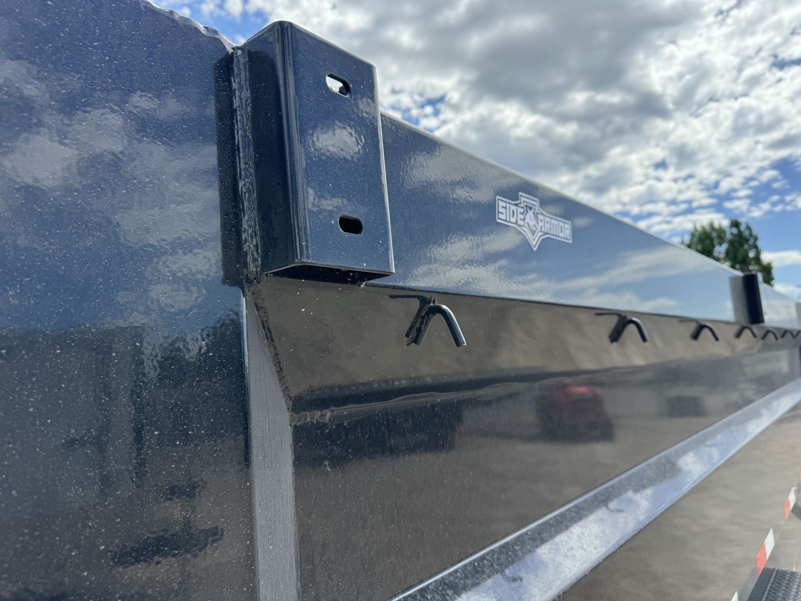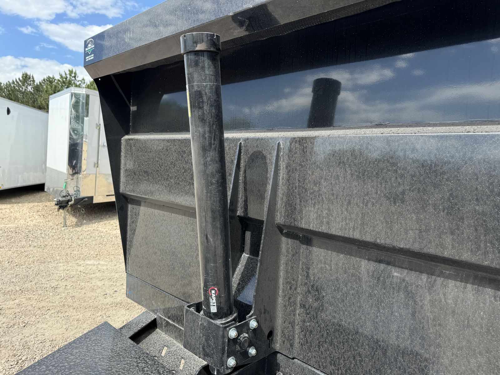 Iron Bull DTB beast models are built to work. Every DTB sits atop of a dual layer of 6" I-beam weighing in at 12 pounds per foot main frame construction. That's 24 lbs/ft of pure steel putting maximum strength into the most critical part of your trailering system. These show-stopper trailers are built to haul. 14,000 lbs of GVWR and are equipped with enough lifting power to ensure you can always get your job done. Now for 2021, each Iron Bull 83 wide dump comes equipped standard with an industry best one piece 7 gauge floor and 24" high 10 gauge sides with 7 machined breaks that will not bend, bow, or buckle even under the most demanding conditions. One of the most unique features on the Iron Bull DTB is the structure under the bed. Another instance of strength where it matters is our one of a kind ramp tracks. These full length bed runners ensure your floor is never warped across the crossmembers by any heavy tracked equipment you might haul. We have also equipped 10k jacks and a side step for easy bed access. A three way gate will ensure maximum flexibility for transport and dumping. Top tier components come together with the most rugged construction on the market to deliver a dump trailer like no other. Dexter Nev-R-Adjust brake axles and radial tires provide a solid foundation for each Iron Bull dump trailer and ample grip for stopping power. Sherwin-Williams Powdurda Powder coat gives each trailer a rugged finish with a showroom shine. 516 hydraulic cylinders are nested into a scissor hoist and provide the muscle for each Iron Bull dump trailer with KTI remote operated hydraulic pumps feeding the beast. USA made, lifetime LEDs are provided by TecNiq lighting and all units are powered by an Interstate deep cycle battery.