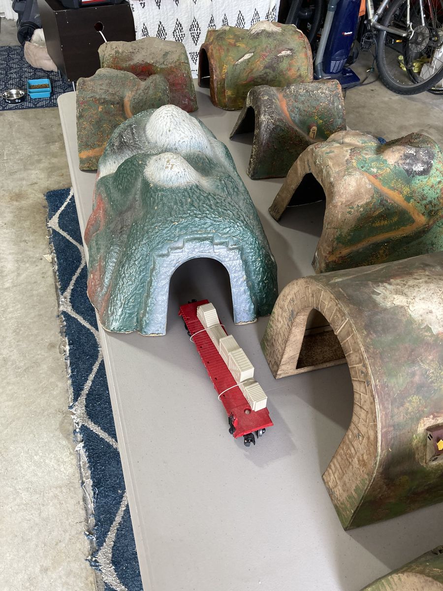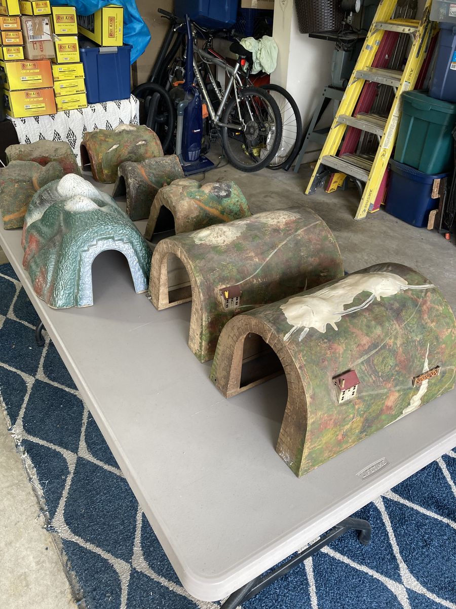 Cleaning out the condo getting ready for retirement, up for sale as a group is 8 train tunnels. Only the two large ones I actually know the manufacturer of.