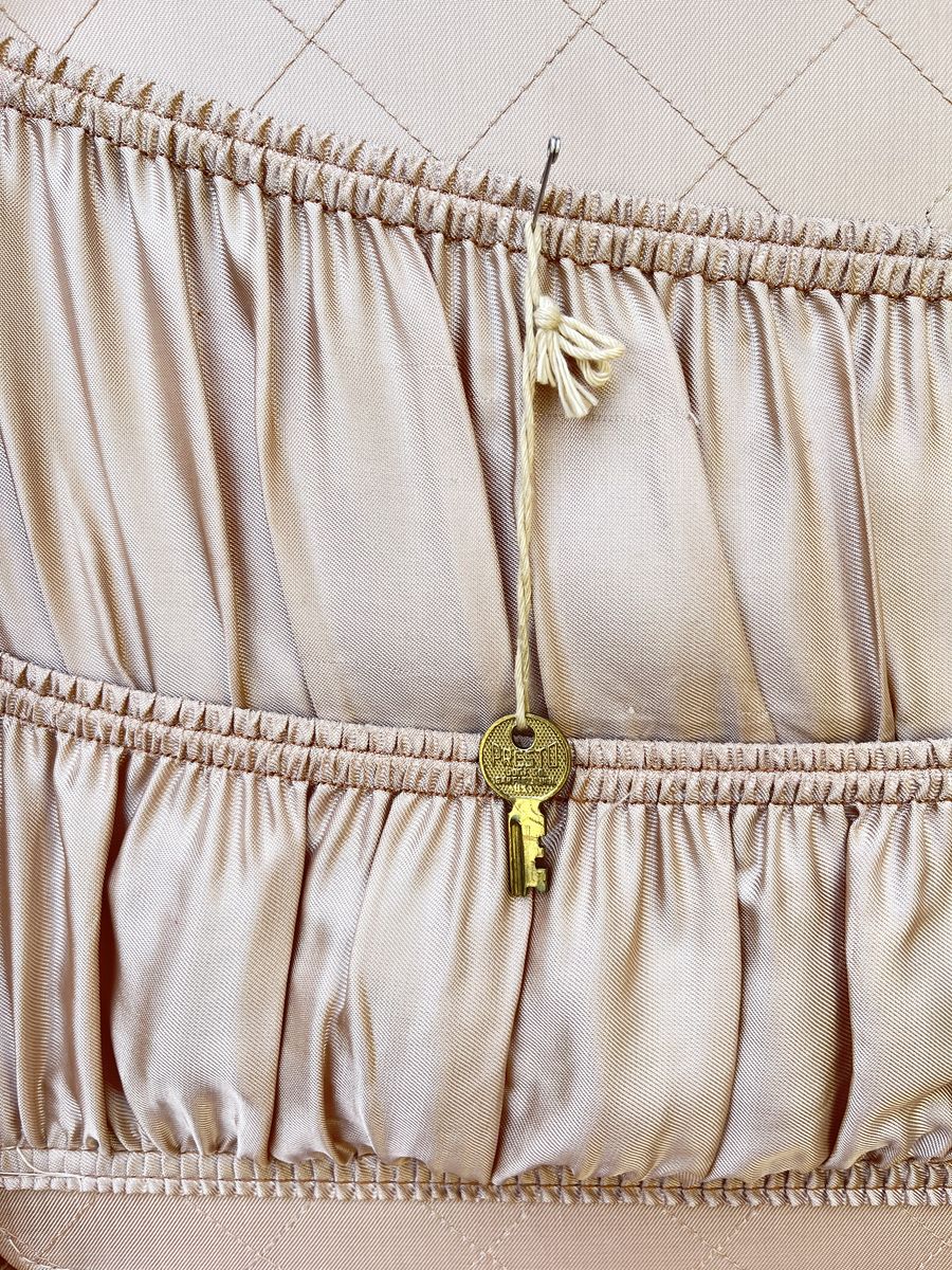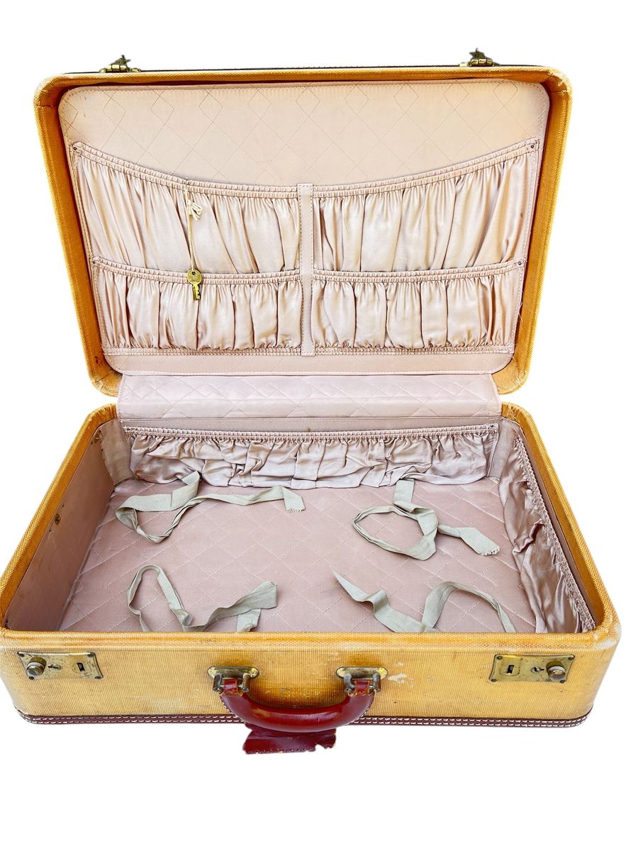 Vintage suitcase. Some wear on outside. No wear inside. Includes working Presto key.