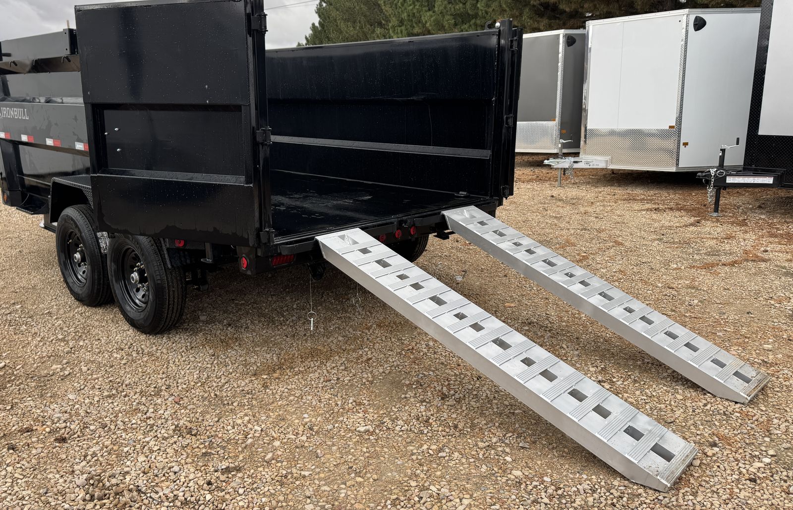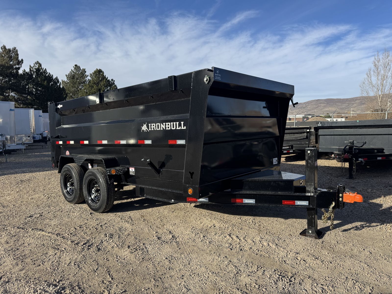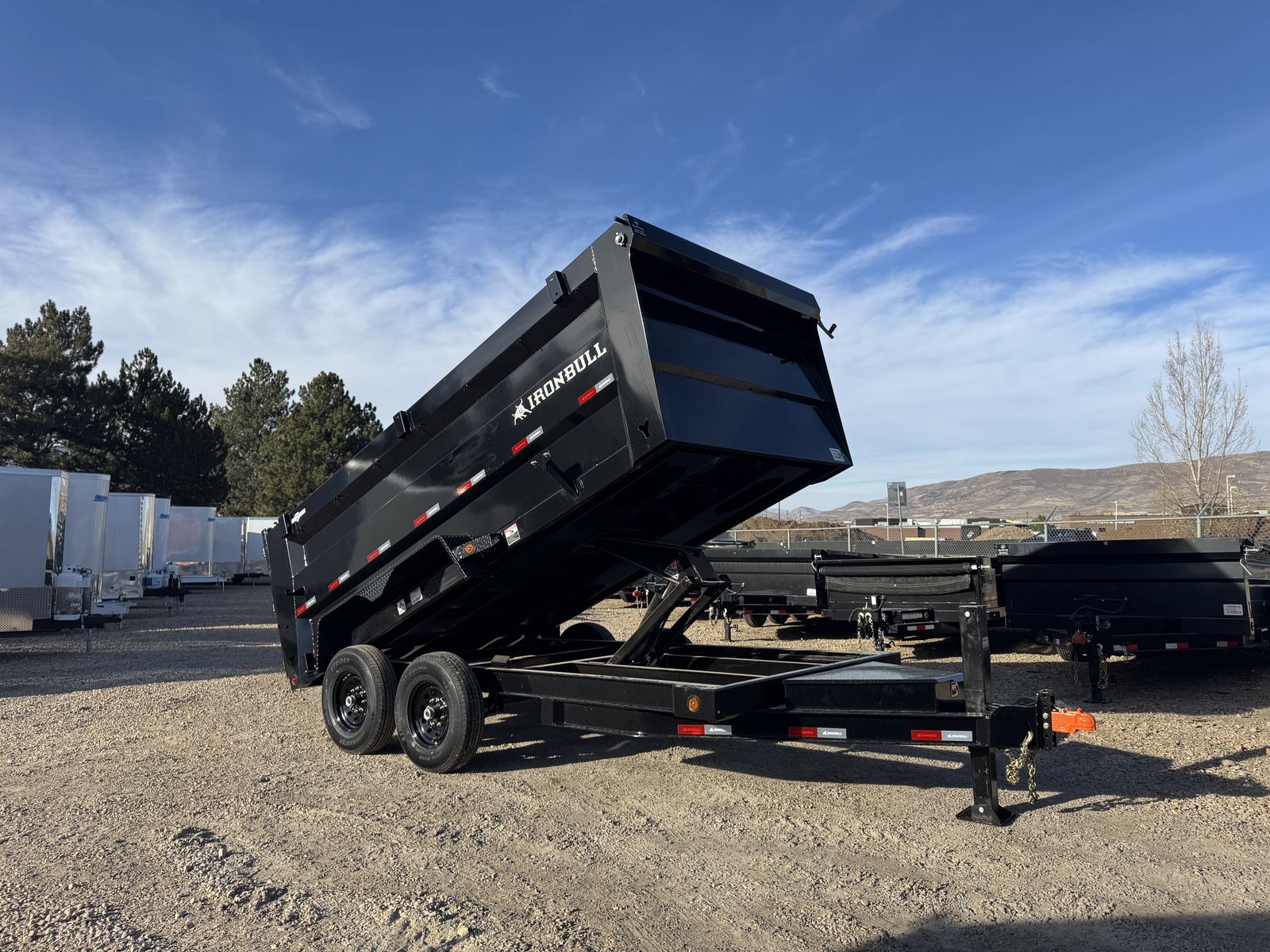 Introducing Iron Bull's NEW DTB MODEL! With 14,000 lbs capacity, these 83" wide dumps are built tough. Features include a 7-gauge floor, sturdy 10-gauge sides, and unique under-bed structure. Plus, full-length bed runners, 10k jacks, and a three-way gate for flexibility. Equipped with brake axles, radial tires, and a durable powder coat finish. A scissor hoist, TecNiq LEDs, and a deep cycle battery ensure reliable performance. Standard accessories: tarp kit, spare tire mount, and more. Backed by our IronClad warranty. Conquer your hauling tasks with Iron Bull!