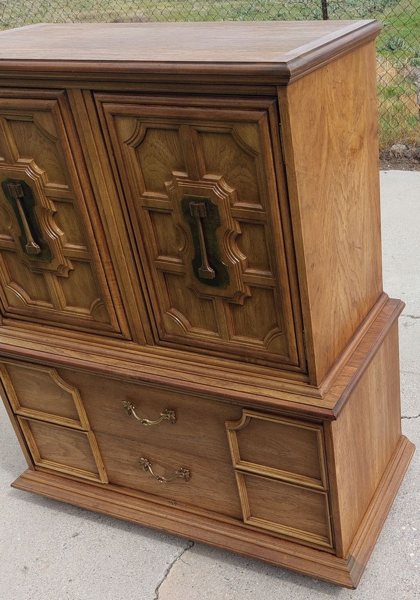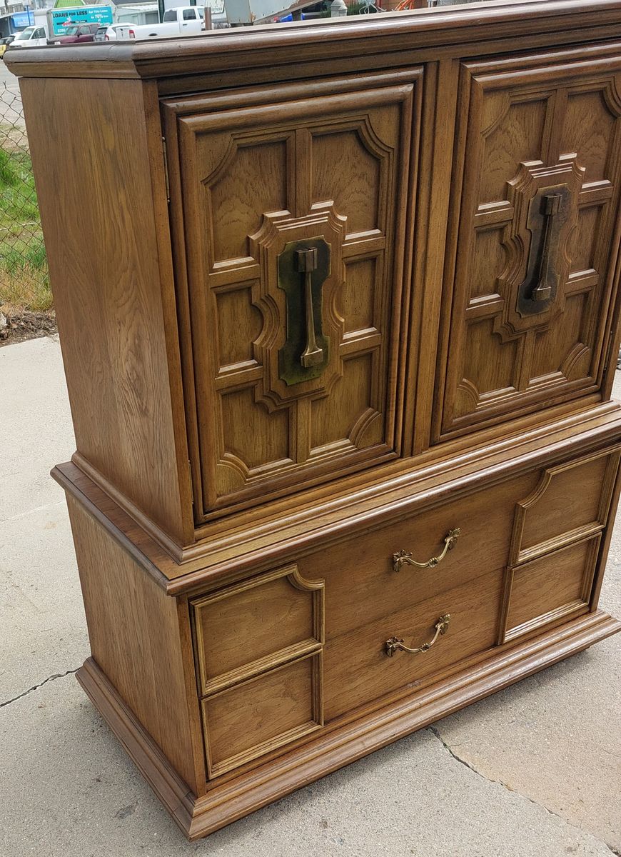 VenmoThis is a nice Mid Century Modern style dresser with 5 drawers and 2 shelves. The drawers work perfectly and are dovetailed. It is made of oak. It has 2 shelves on the right side. It measures 51" tall by 42 1/4" wide by 21" deep. No holds. FCFS with CASH or Venmo. In Murray. 435-249-1305.