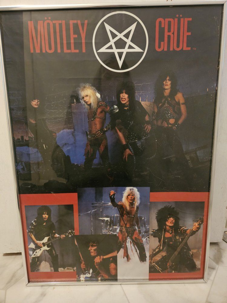 VenmoThis is the original vintage print of Motley Crew from the 1980s. It's been framed in metal and glass since purchase. Measures tall 28 1/2", wide 21 1/2". Rock and roll memorabilia! No damage, from a smoke and pet free home. I'm moving from a house to an apartment. Please see my other listings. Thank you!