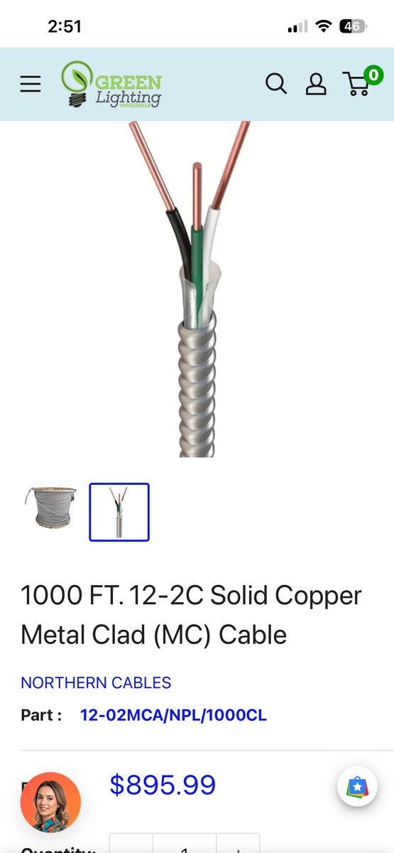 CashAppAbout 900 ft of 12/2 MC cable. We used about 100 ft. Of the 1000 ft spool Asking $400 obo