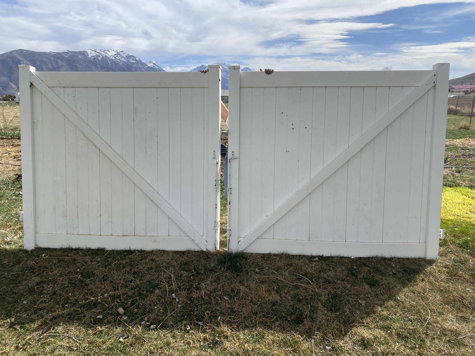 VenmoI have two Vinyl fences gates for sale. These two work together as a set. The are each 69 1/4 inches tall and 74 1/4 inches wide. All needed hardware is attached!
