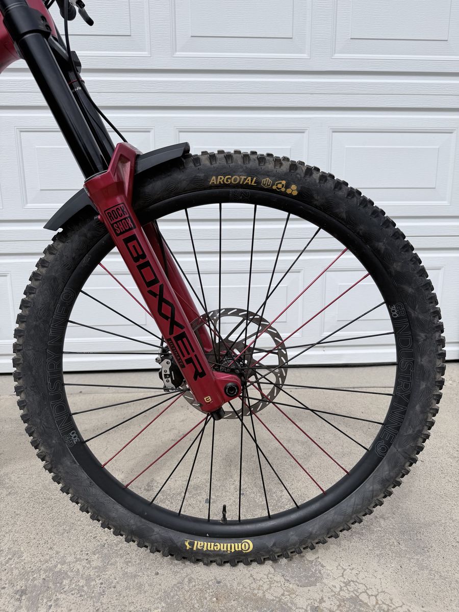 -Industry Nine DH alloy wheels with custom red/black spokes (2 extra spokes included)