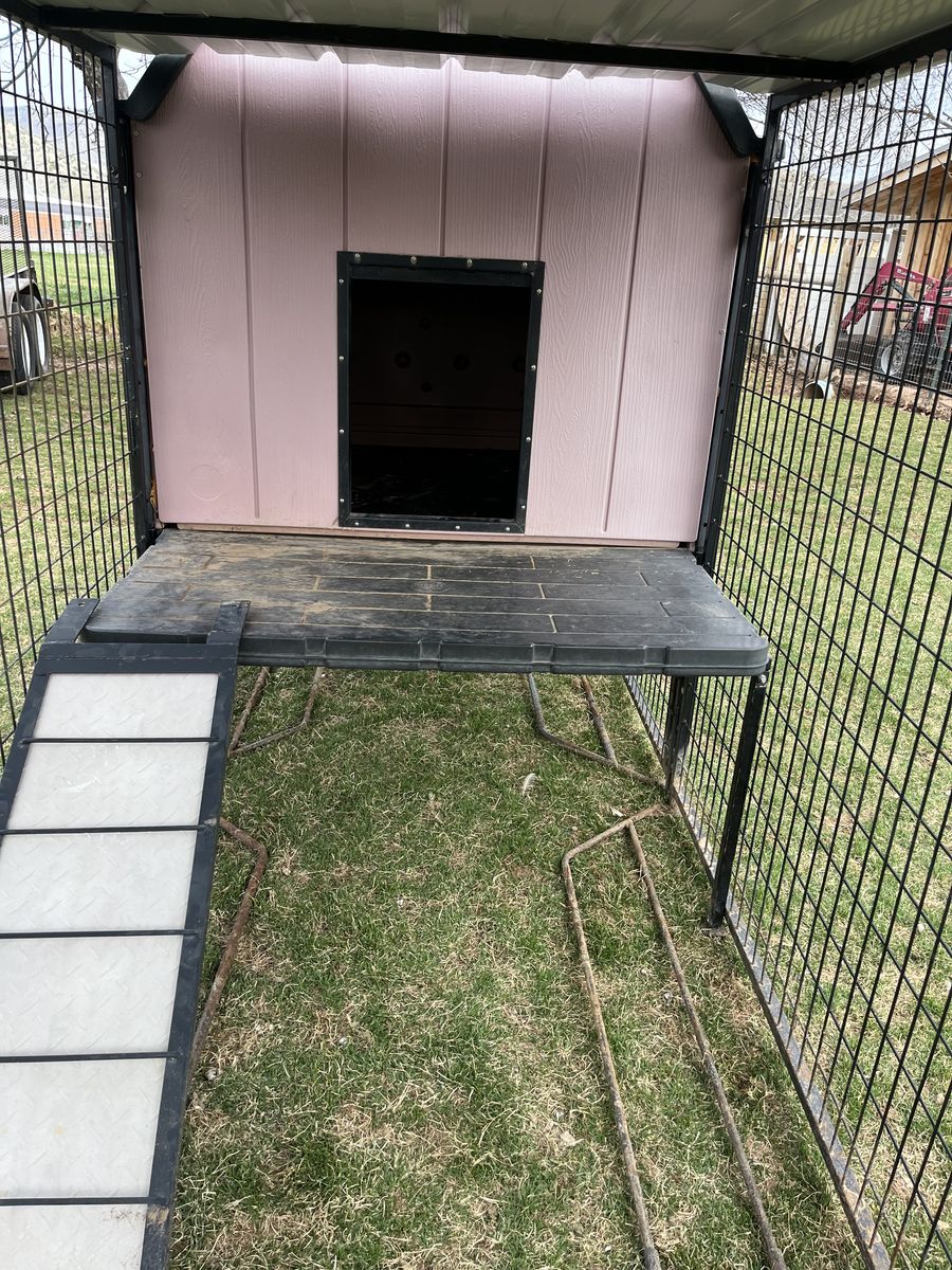 VenmoHeated and vented dog house, perfect for hot and cold weather. this is a $3500 set up brand new. It is about 12 and a half feet long, 4 feet wide, and about 6 feet to the top of the dog house. It comes with metal rungs along the bottom to prevent your dog from digging out. There is also a door on the back of the house for easy access. It belonged to my grandparents before they moved and I already have a dog pen. Willing to negotiate on price. $700 obo
