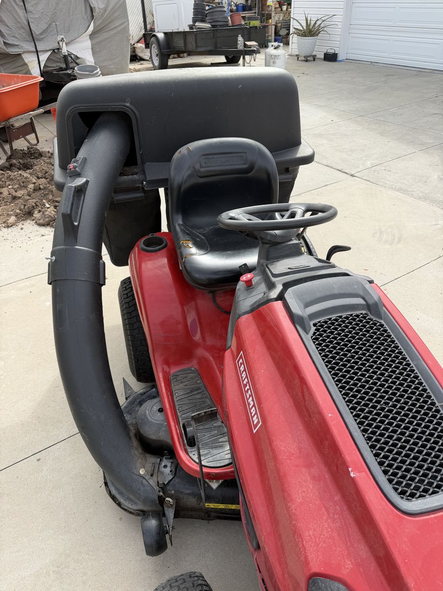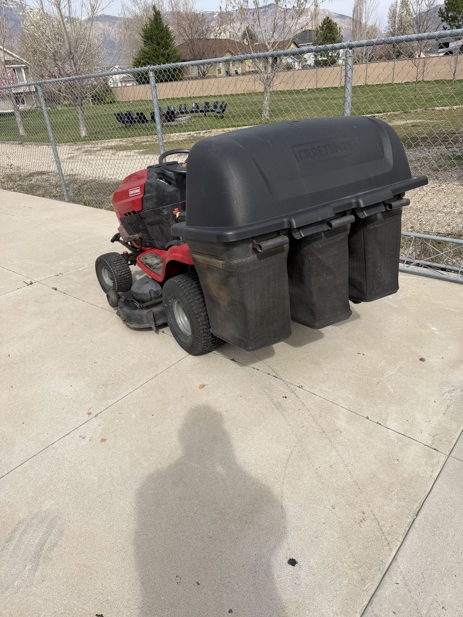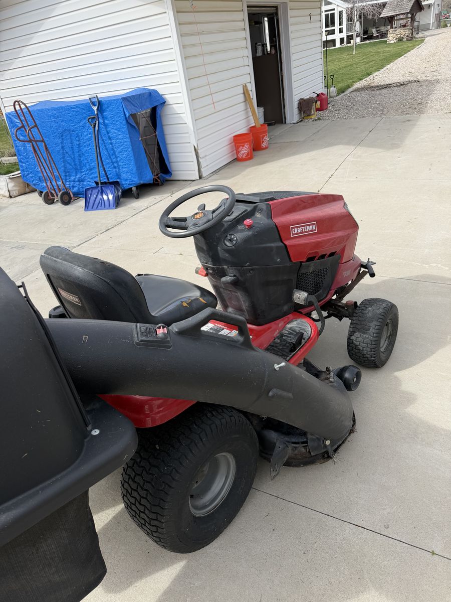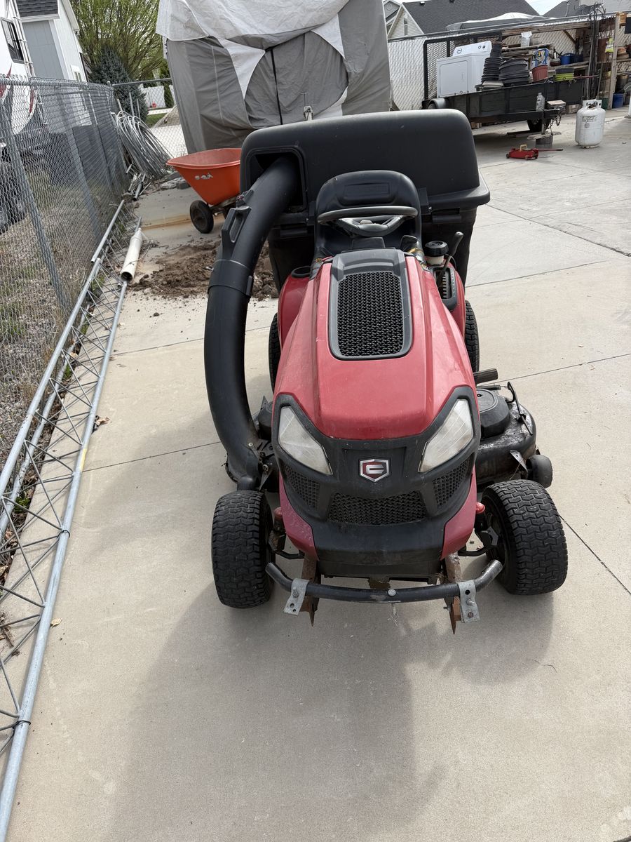 VenmoNice riding mower. Sharp turning radius. Mows forward and backward with speed control all on one foot control. Lots of power. Three bags for catching the grass when you want to bag your grass. Powerful engine. Cuts a 4 foot swath. Will deliver for free within 25 miles.