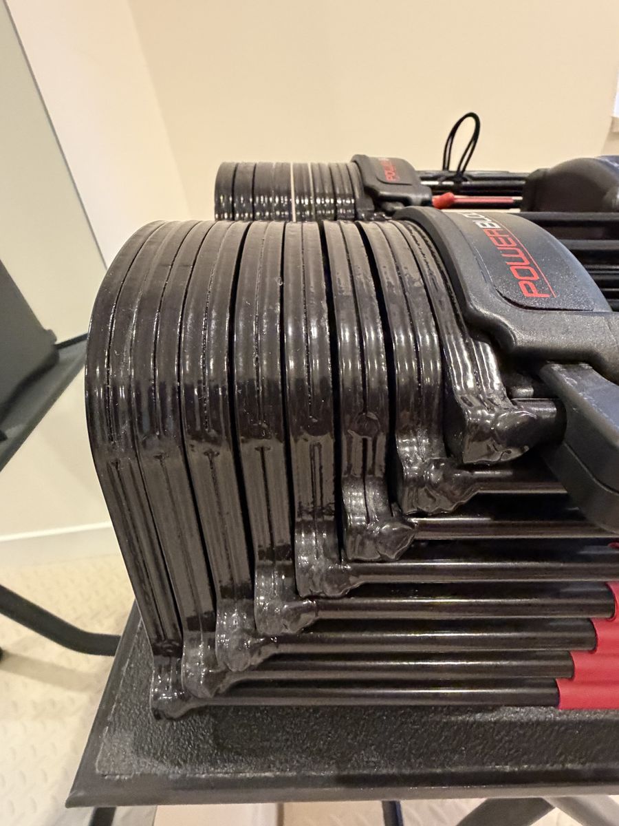 VenmoPowerblock adjustable dumbbells 5-90 Compact stand included.