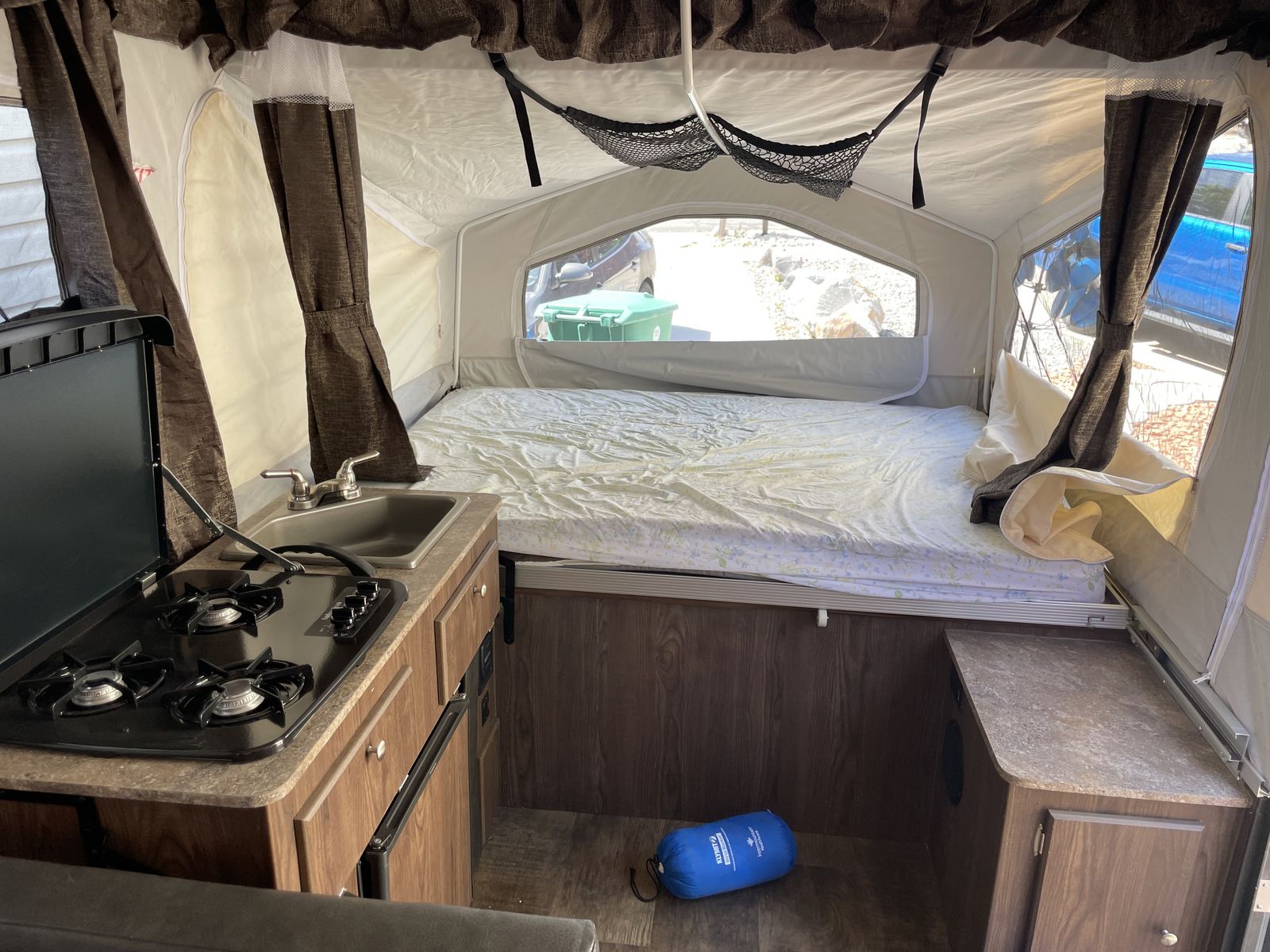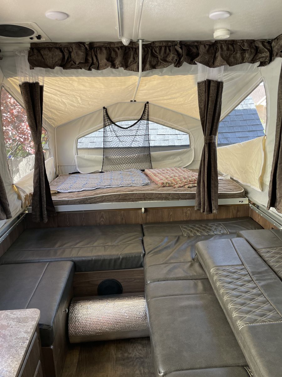 2019 Forest River Rockwood 1910ESP, OBO. Great pop up trailer, offroad style ith higher clearance and bigger wheels. Very light, can be maneuvered with a hitch jack and one person. Two queen-ish pullouts and the dinette area converts to a bed. LED lighting, BT stereo, small exhaust fan, electric/propane refrigerator, hot water heater, exterior shower, 3 burner stove, lots of storage, outisde propane hook up for grilling, minor repairs by first ower to plastic windows, no leaks - towed with Tacoma no problem. Unsure of condition of attached awning, we didn't use it a ton, can discuss if you'd like to take a look.