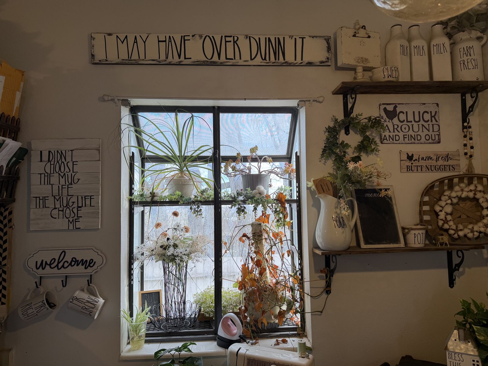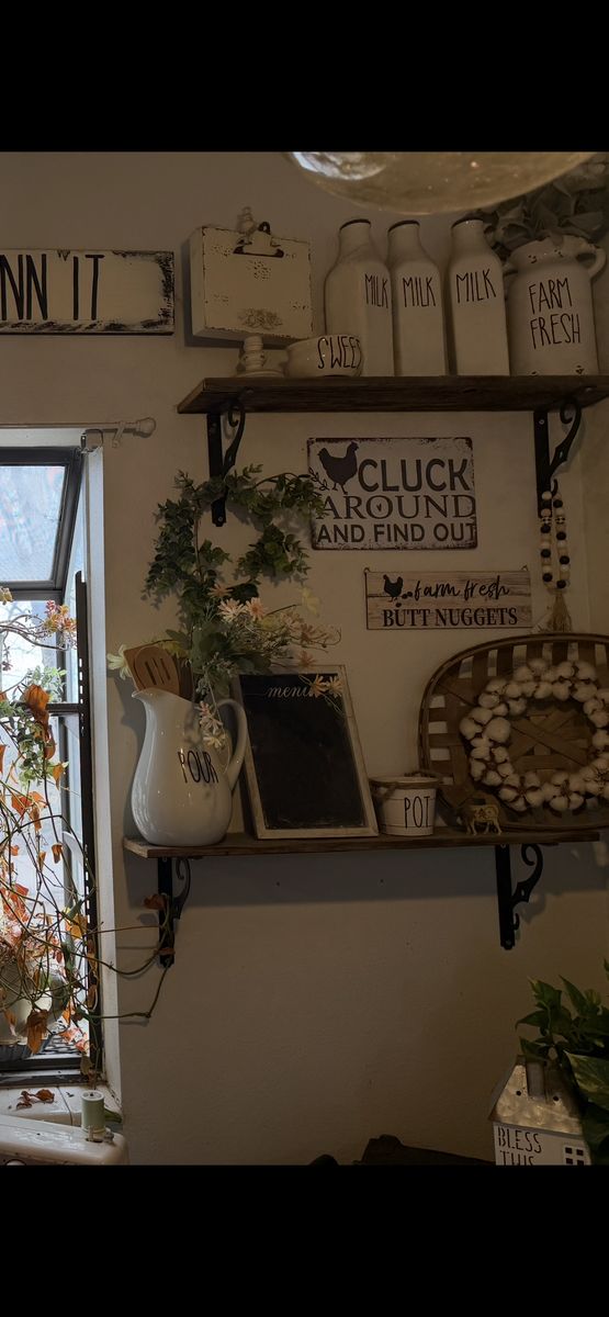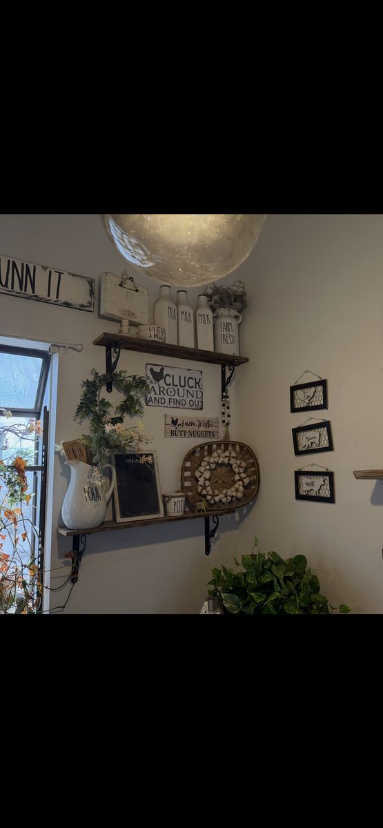 Changing my decor style and selling all farmhouse / rustic decorations. Lots available — wall decor, lanterns, flower pots, kitchen decor, baskets, wreaths, greenery, signs, and more.