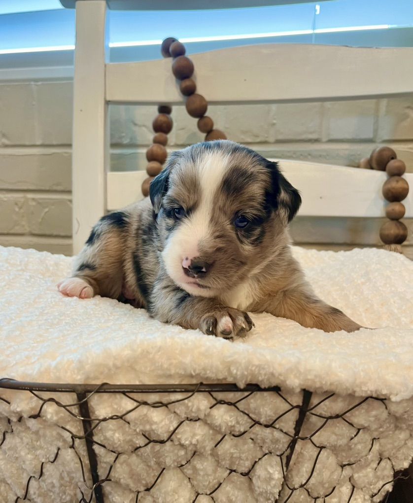 VenmoChase is the best stud for your next litter! He is a beautiful blue merle with gorgeous blue eyes, cutest personality and amazing genetics. He is a proven stud and has produced the prettiest puppies!