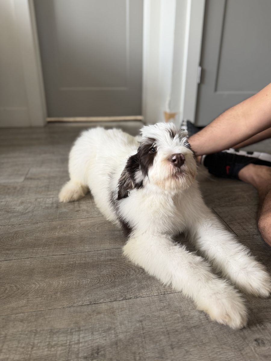We have a beautiful litter of Bernedoodle puppies looking for their forever homes! Mom is 50lbs and dad is 45lbs. They’ll be around that weight when full grown.