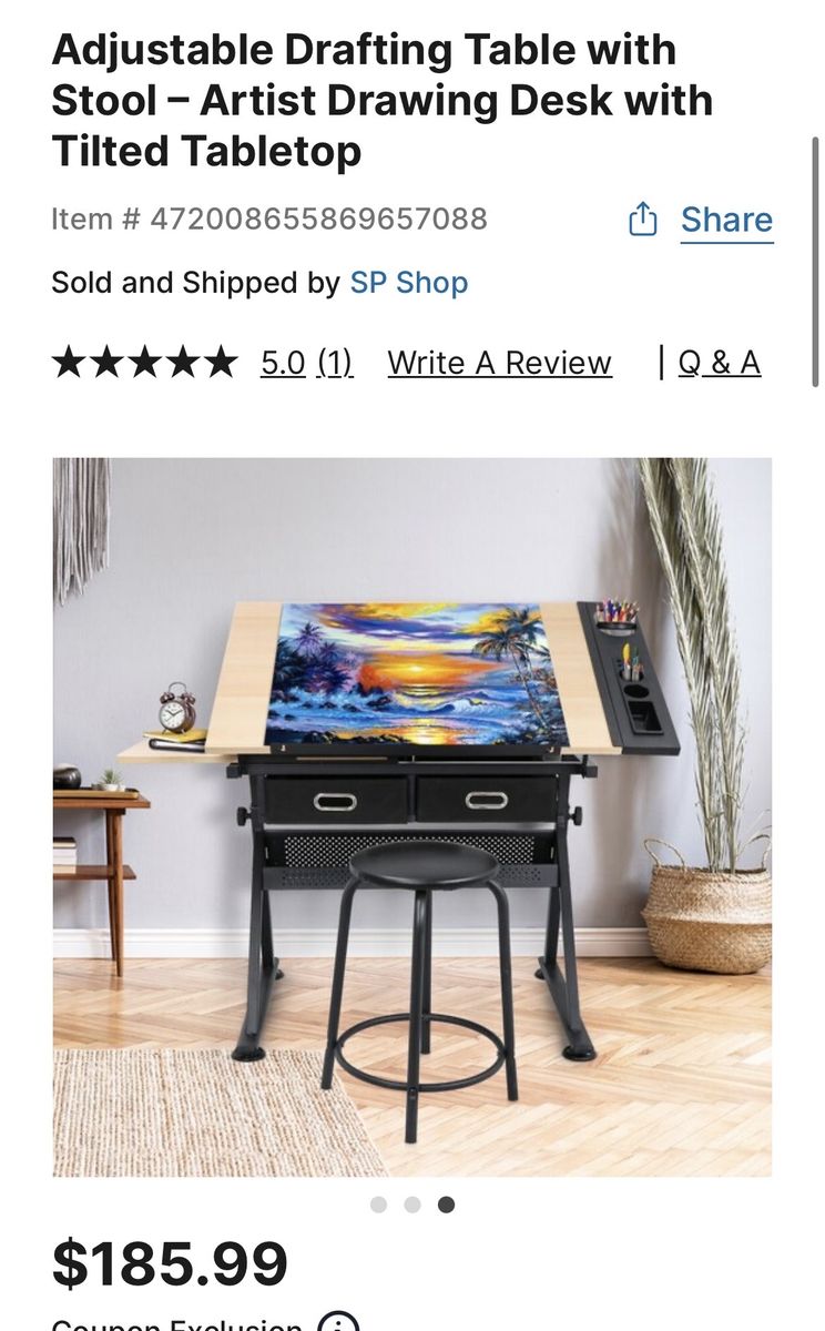 Adjustable Drafting Table with Stool – Artist Drawing Desk with Tilted Tabletop