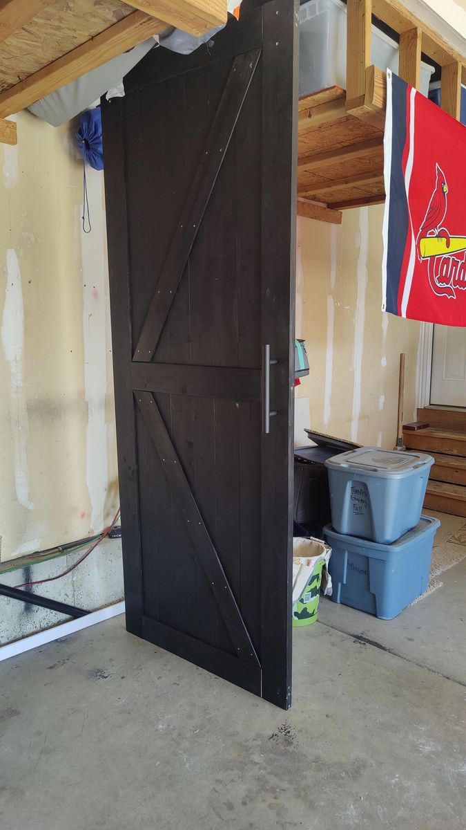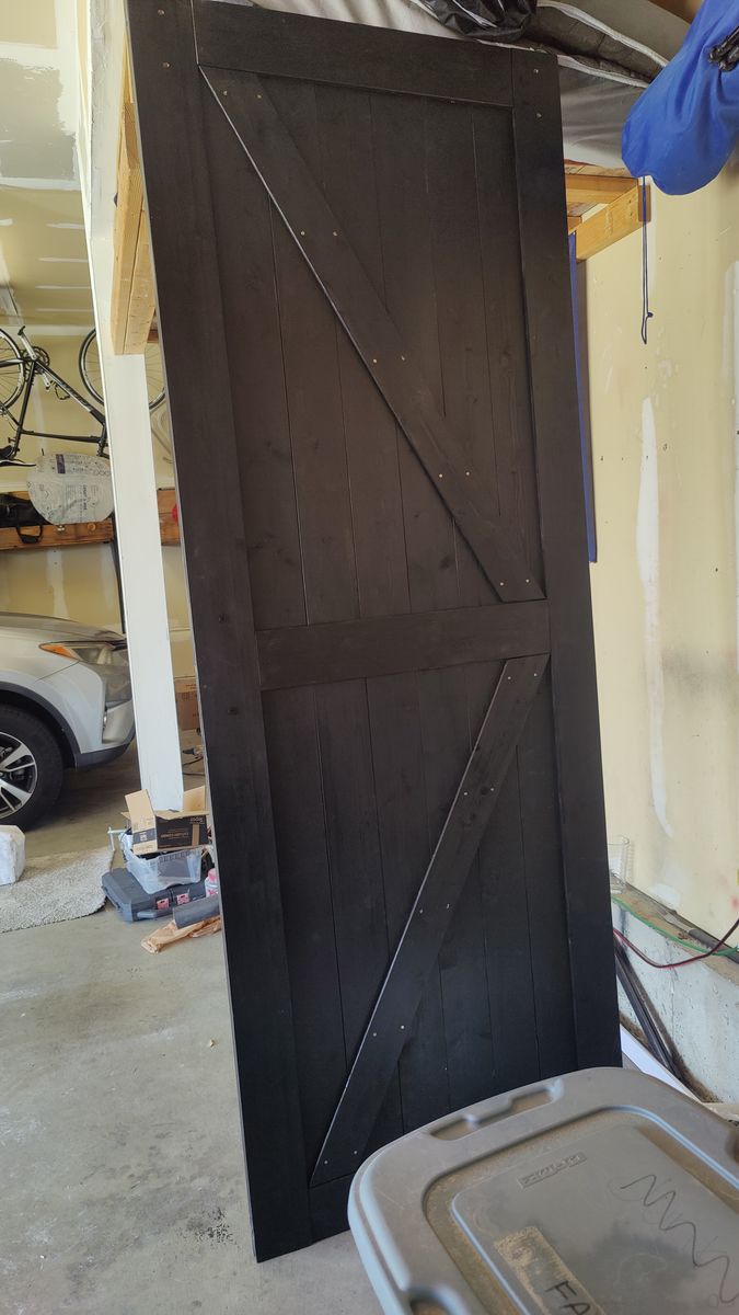 Venmo36" x 96" Solid Wood Paneled Barn Door with Installation Hardware Kit - stained black. Purchase door and stained it and put it together not realizing it was 96 in high. Will not fit in my home.