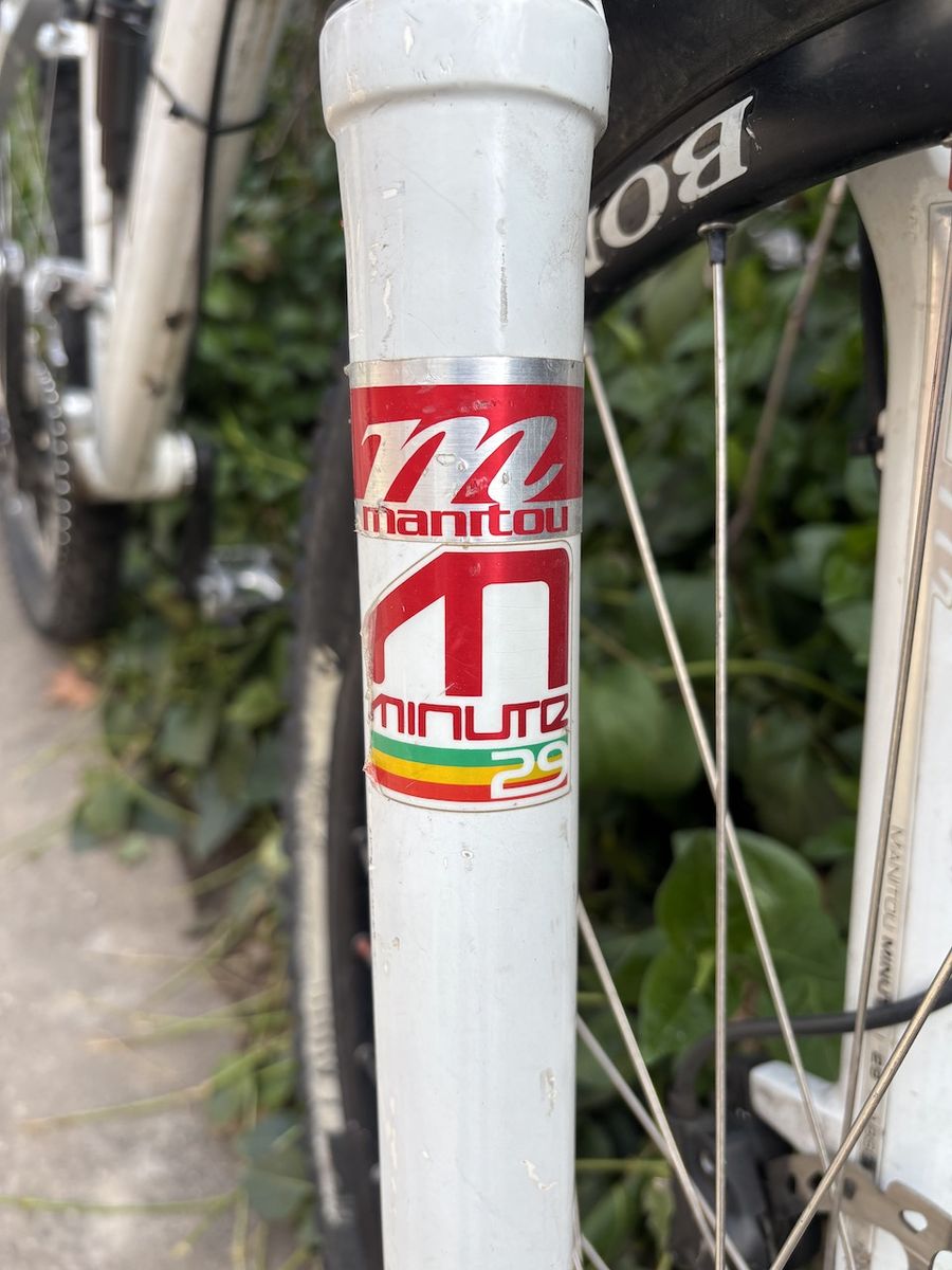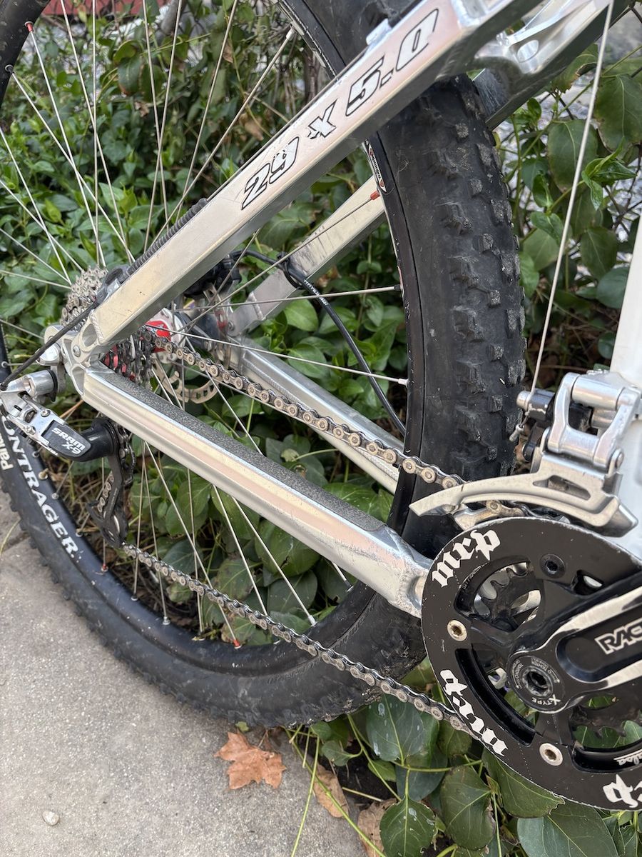 Manitou Minute 29 fork, SRAM drivetrain, MRP chainguide, Bontrager 29x2.35 tubeless tires, frame 6061 T6 aluminum.