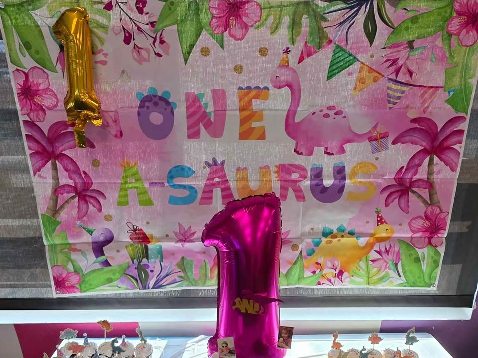 VenmoFirst birthday party decor for girl one-a-saurus dinosaur. Comes with latex balloons for arch, backdrop, highchair banner, hot pink 1 milar balloon, dinosaur milar balloon, and clear boxes with ONE on them. Pickup only please. Cash or venmo accepted. Smoke-free pet friendly home.
