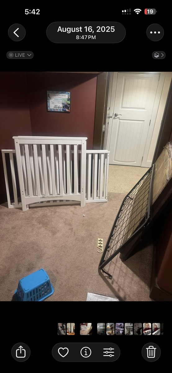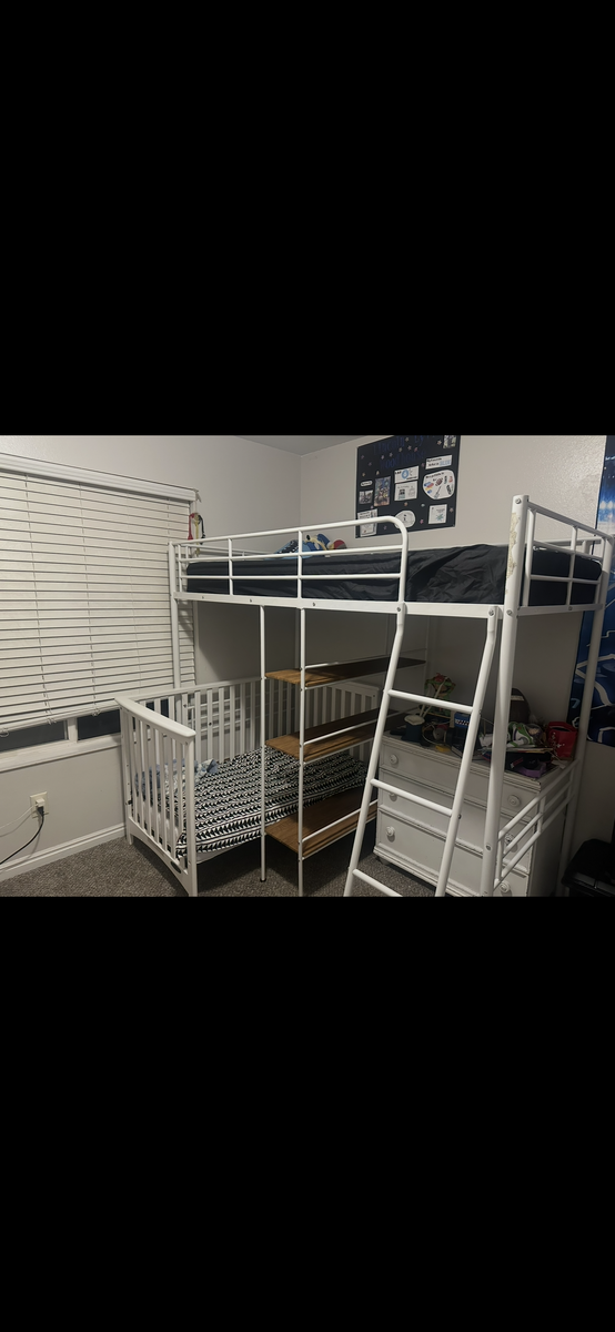ApplePayBeautiful white wooden crib that grows with your child! This versatile piece features adjustable mattress heights, allowing you to keep the mattress high for newborns and lower it as they grow and start to stand. It also easily transforms into a toddler daybed (as shown in the photos).