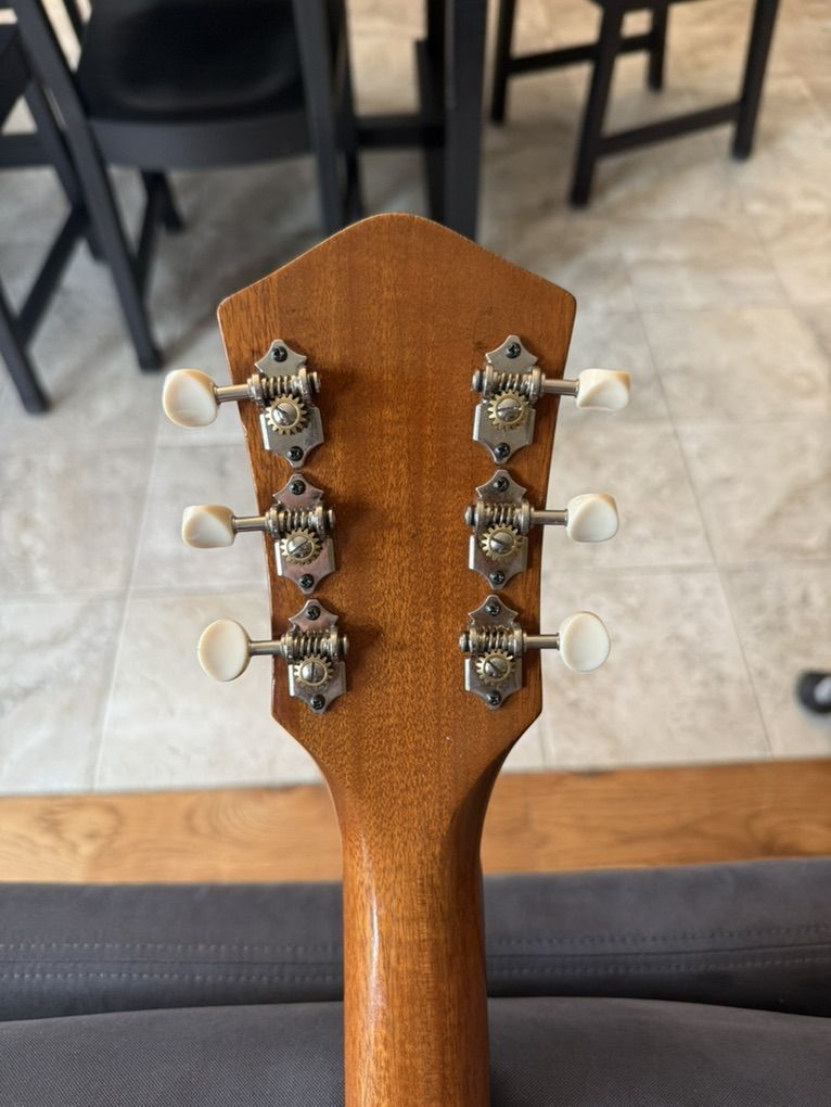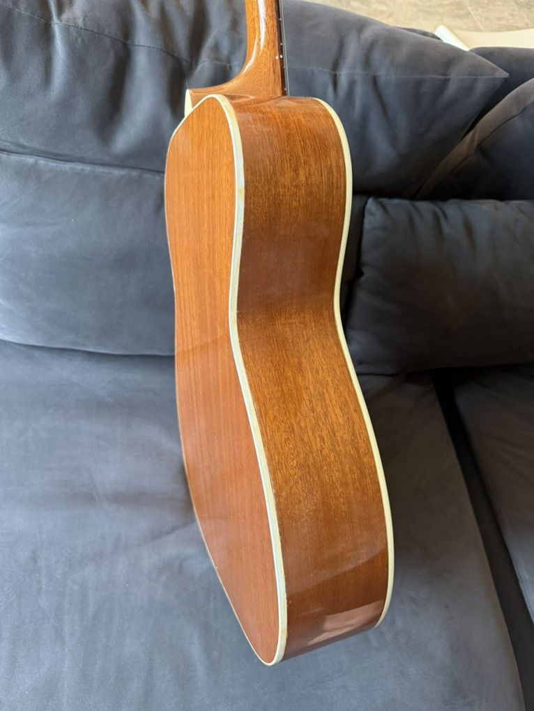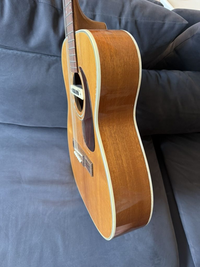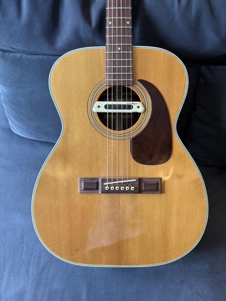 It has had a neck reset, has an upgraded bridge plate (originally sid not had bridge pins), and was converted to x bracing. Also includes this LR Baggs M-80 pickup, which is worth $279 on its own. It’s got normal wear for a 50+ year old guitar (I believe it was made in the 70s), but is really in awesome shape overall, especially with the neck reset and x bracing conversion. Has a fully functioning truss rod as well. Let me know if you want to come check it out.