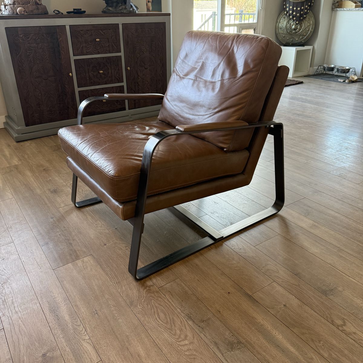 This chair was purchased from RC Willey one year ago. It is 27” wide, 31” deep and very solid construction. Asking $200 OBO.